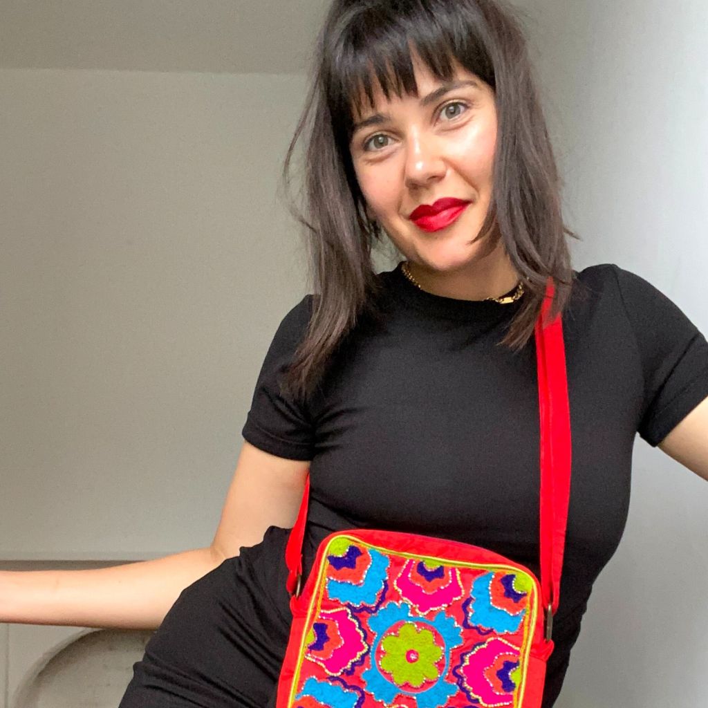 In the second look, I’m wearing this minimal Rhyder Dress ($179) from BEYOND By Bea, which I’ve paired with this simple Wyn Necklace ($120), some patent platform combat boots and a cute thrifted bag.