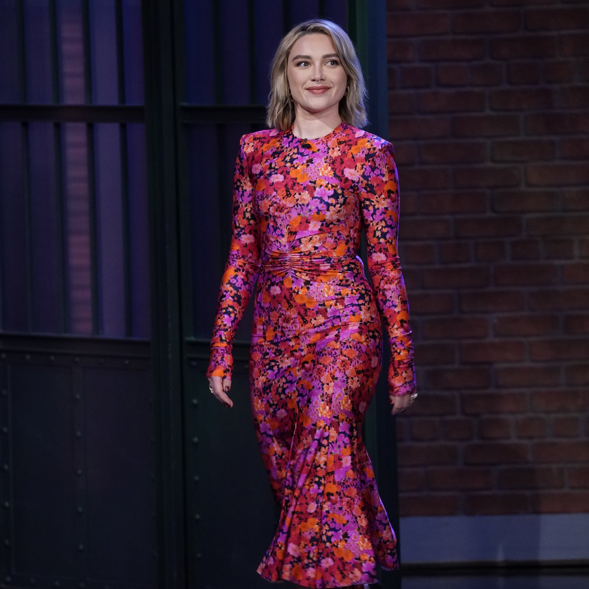 Pugh has worn a string of show-stopping outfits this year as she’s works with longtime stylist, Rebecca Corbin Murray. From a totally sheer skirt at Paris Fashion Week to that see-through Barbiecore look at the Valentino Haute Couture show, she’s become our standout style icon for 2022. Plus, there was the dramatic Valentino gown she wore on the red carpet at the Venice Film Festival for the premiere of “Don’t Worry Darling“, which was later shrouded in controversy thanks to spit-gate.