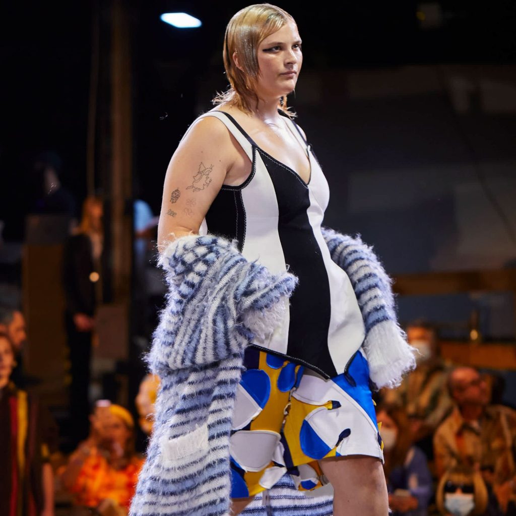 Of course, casting comes into play. Who is wearing these clothes as they’re introduced to us for the very first time? The Fashion Spot’s New York Fashion Week diversity report for the season states that transgender and nonbinary model appearances accounted for 2.4 percent of castings for spring/summer 2022. The total number was 30, seen on runways such as The Blonds, Prabal Gurung, Collina Strada, Moschino, Batsheva, Gabriela Hearst, Jonathan Simkhai, and Chromat, of course, which also included one drag queen and one intersex model. That’s an increase compared to the six transgender or nonbinary models at NYFW in fall 2021, but it’s still disheartening when you consider the fact that the European shows that follow tend to be even less inclusive historically.