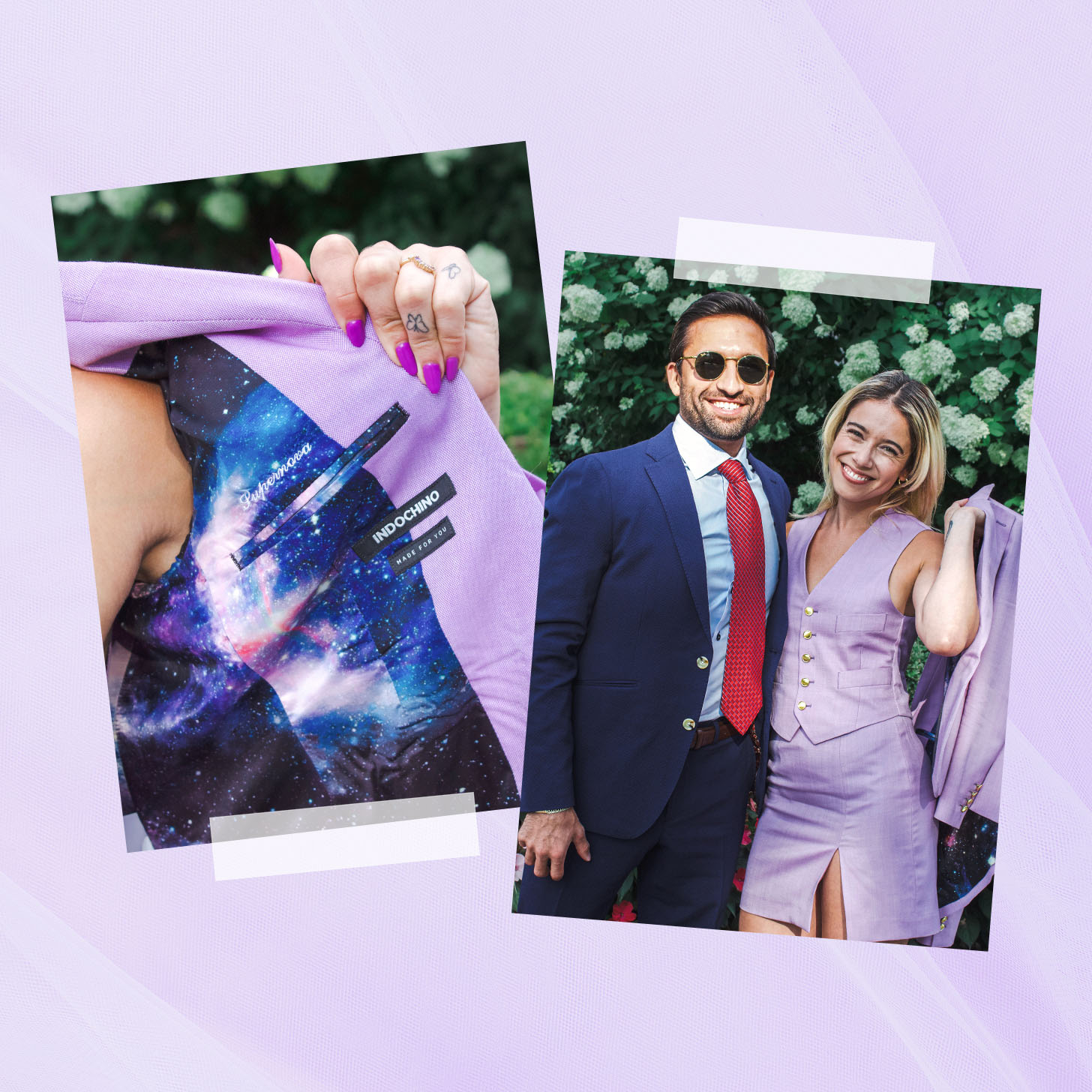 In the past, I’ve coordinated wedding-guest looks with a partner simply by matching my dress to his tie. In my experience, the task can be frustrating – especially when some dudes couldn’t quite grasp the concept of color clashing – but appearing in sync with your date is possible. Never did I consider the idea of his-and-her matching suits until I scrolled past an Indochino ad on Instagram and completely fell in love with a powder-pink blazer-and-miniskirt combo, replete with a modest leg slit and styled with metallic pointed-toe booties. Maybe it was my Barbiecore inclination, but I immediately had to have it.