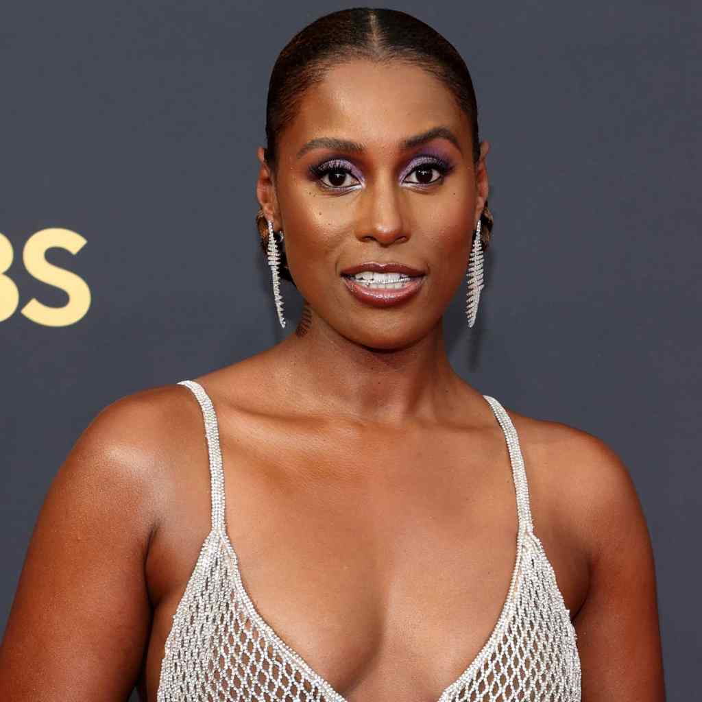 The votes have been counted and the results are in for the 2021 Emmys, and our main takeaway? Issa Rae looked damn good in her custom Aliétte NY dress on the red carpet. Draped from the shoulders down in a mesh curtain of crystals, the Insecure star looked anything but, wearing nothing but a pair of black briefs beneath the sheer gown. Shimmering from head to toe, Issa let the look speak for itself, pairing it with a few geometric rings, a set of silver feather earrings, a sparkling diamond grill, and smoky purple eyeshadow.