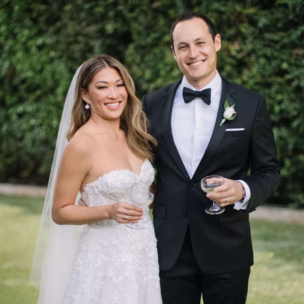 Jenna Uschowitz is married! On July 24, the Glee actress said “I do” to longtime love David Stanley. According to Brides, the couple celebrated with 104 of their loved ones during an outdoor ceremony at a Los Angeles estate. Jenna wore a dreamy strapless gown from Netta BenShabu and Kinsley James Couture Bridal, covered in delicate floral detailing for a romantic effect. David opted for a sleek Hugo Boss suit.