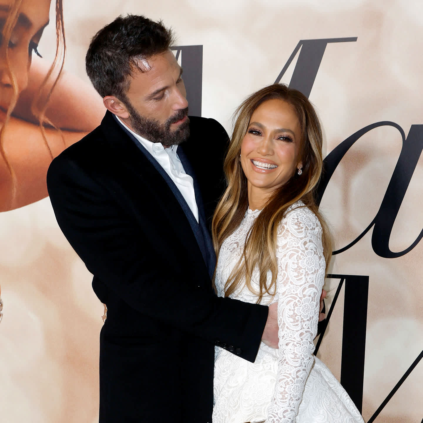 The “Marry Me” premiere certainly looked like a scene out of a wedding, with Lopez and Affleck sharing hugs and kisses as they posed for photographers. See more snaps of the couple’s looks ahead.