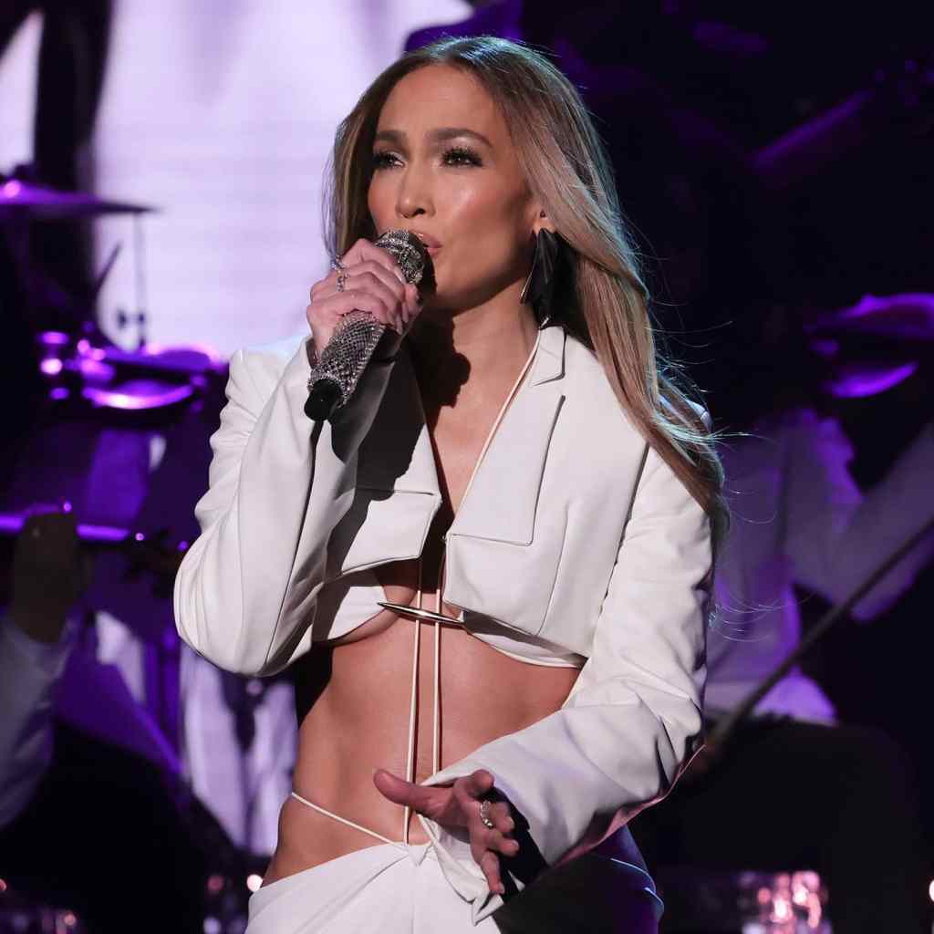 A busy press tour comes with many outfits, and with only a few days until the release of “Marry Me,” Jennifer Lopez has sported one stylish look after another. While performing the film’s titular track on “The Tonight Show Starring Jimmy Fallon,” Lopez wore a white outfit consisting of an extremely cropped leather blazer over a bralette and a 2000s-inspired long, low-rise skirt with hip cutouts.