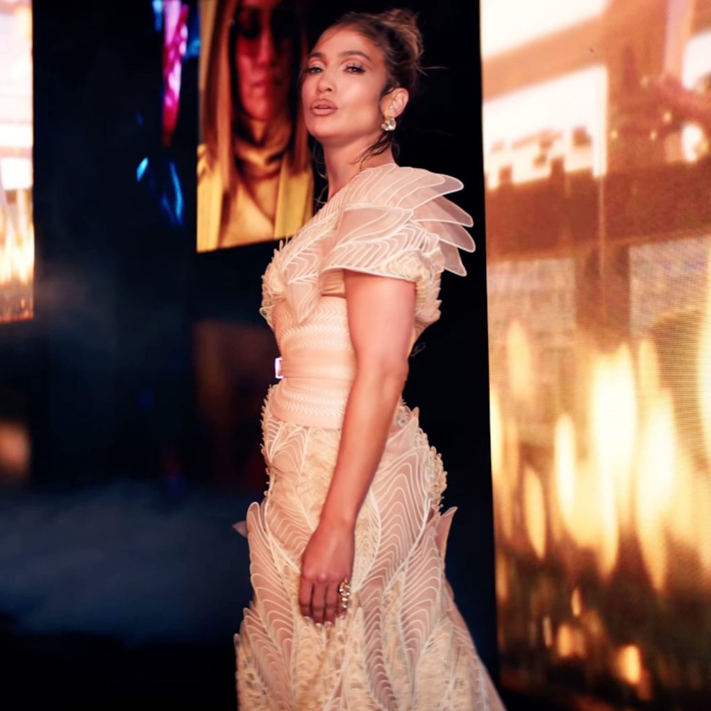 Jennifer Lopez stars in a new rom-com Marry Me alongside Owen Wilson and Maluma, out this coming February, and she’s amping us up for the big premiere with a music video release. Her single “On My Way” was created for the movie, and J Lo’s expressed just how much it means to her on Instagram. “It’s about faith and believing in every step of your journey,” she wrote. Her stylists, Rob Zangardi and Mariel Haenn, found her a dress that speaks to the same idea from Iris van Herpen.