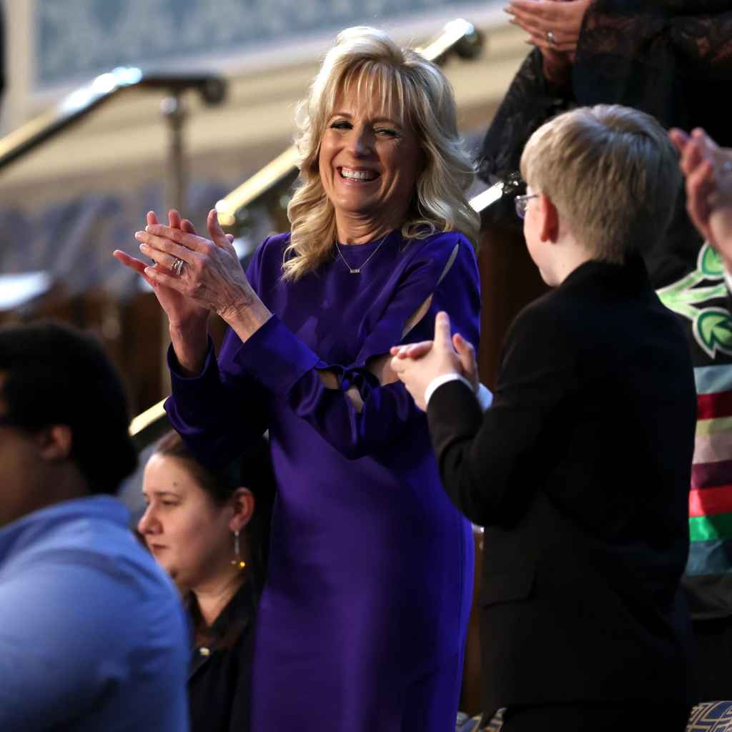 Joining his wife at the address in a black suit and blue tie, President Joe Biden expressed his solidarity during his speech. “Stand and send an unmistakable signal to the world, to Ukraine,” Biden said before a standing ovation. “Bright, strong, resolved. We the United States of America stand with the Ukrainian people.”