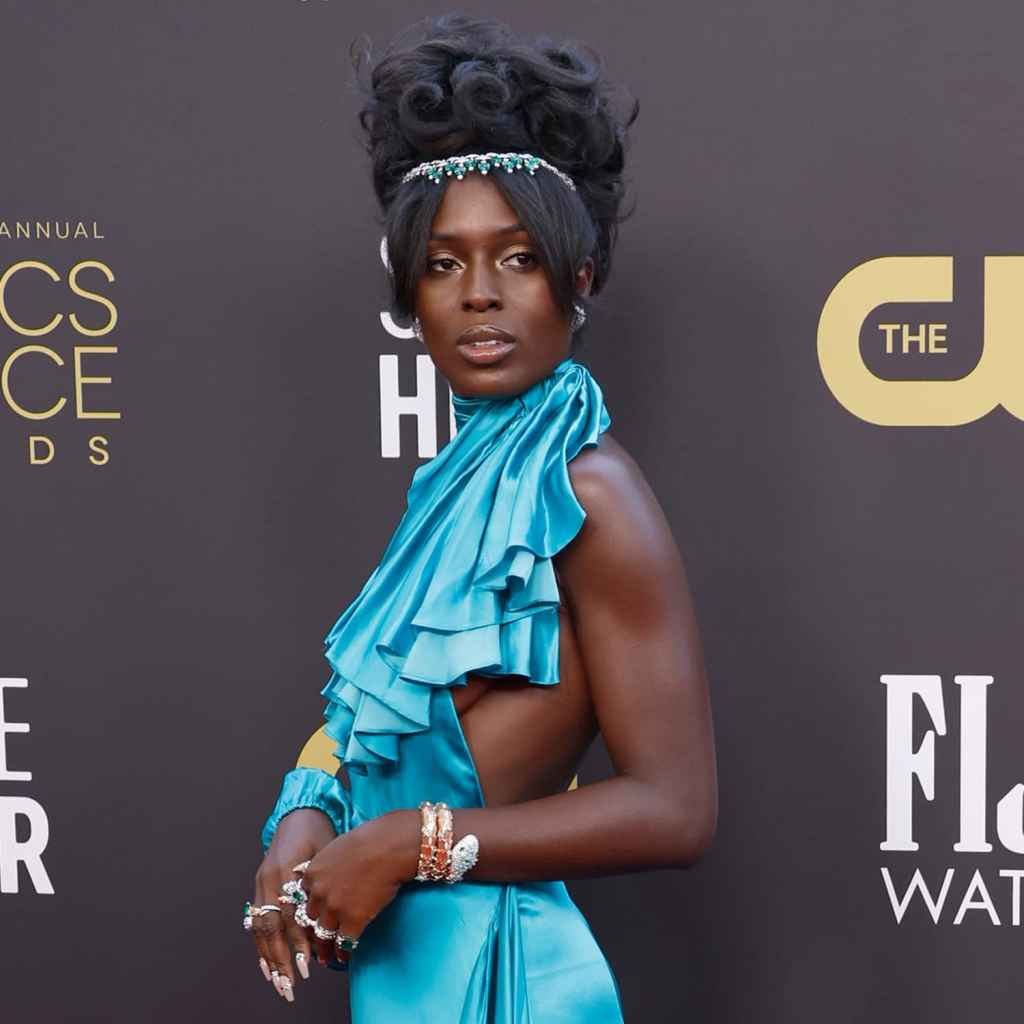 There’s a new ruler of the sea in town, and the waves followed her straight to the red carpet. Jodie Turner-Smith attended the Critics’ Choice Awards on Sunday in a Gucci dress made of teal silk satin that ruffled against the red carpet like waves crashing on the beach. Beautifully tailored, the asymmetrical gown featured a puff sleeve to the right and an oversize ruffle detail across Turner-Smith’s left shoulder. Like water trickling down a fountain, the expertly placed ruffles led our eyes all the way around the backless gown to the satin train flowing behind her.
