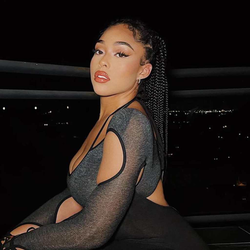 Jordyn Woods has done it again! Just over a week after posing in an asymmetrical mauve minidress with multiple cutouts, she wore the trend yet again for a recent night out. This time, she sported a strappy ribbed knit jersey dress featuring cutouts all over, including in places we haven’t seem them before – just look at that funky arm construction. The halter sleeve piece, which is designed by Korean streetwear designer Hyein Seo, is made from three different types of jersey fabrics.