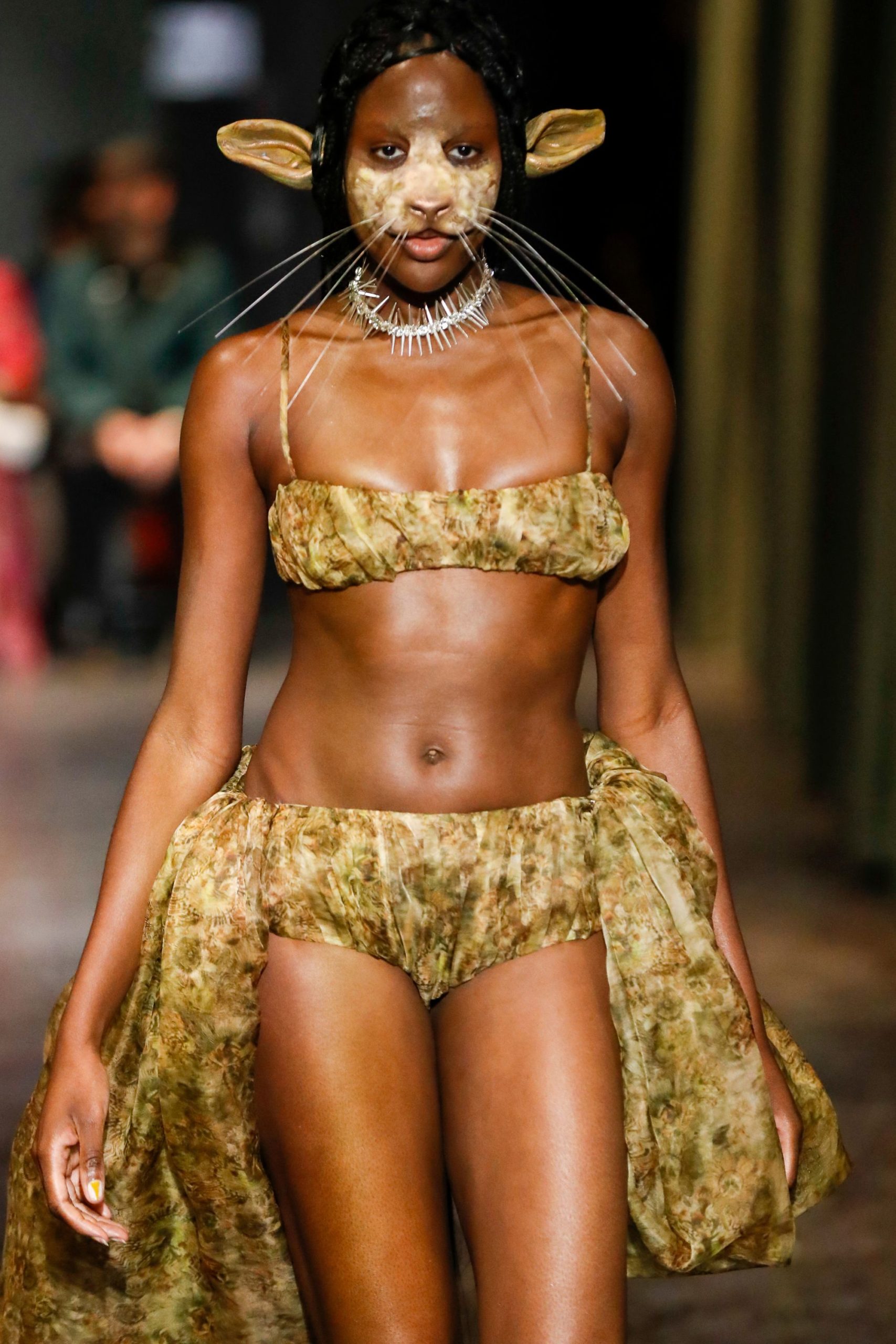 Collina Strada’s RTW Fall/Winter 2023-2024 show at New York Fashion Week, the use of environmentally-friendly prosthetics were a big talking point.