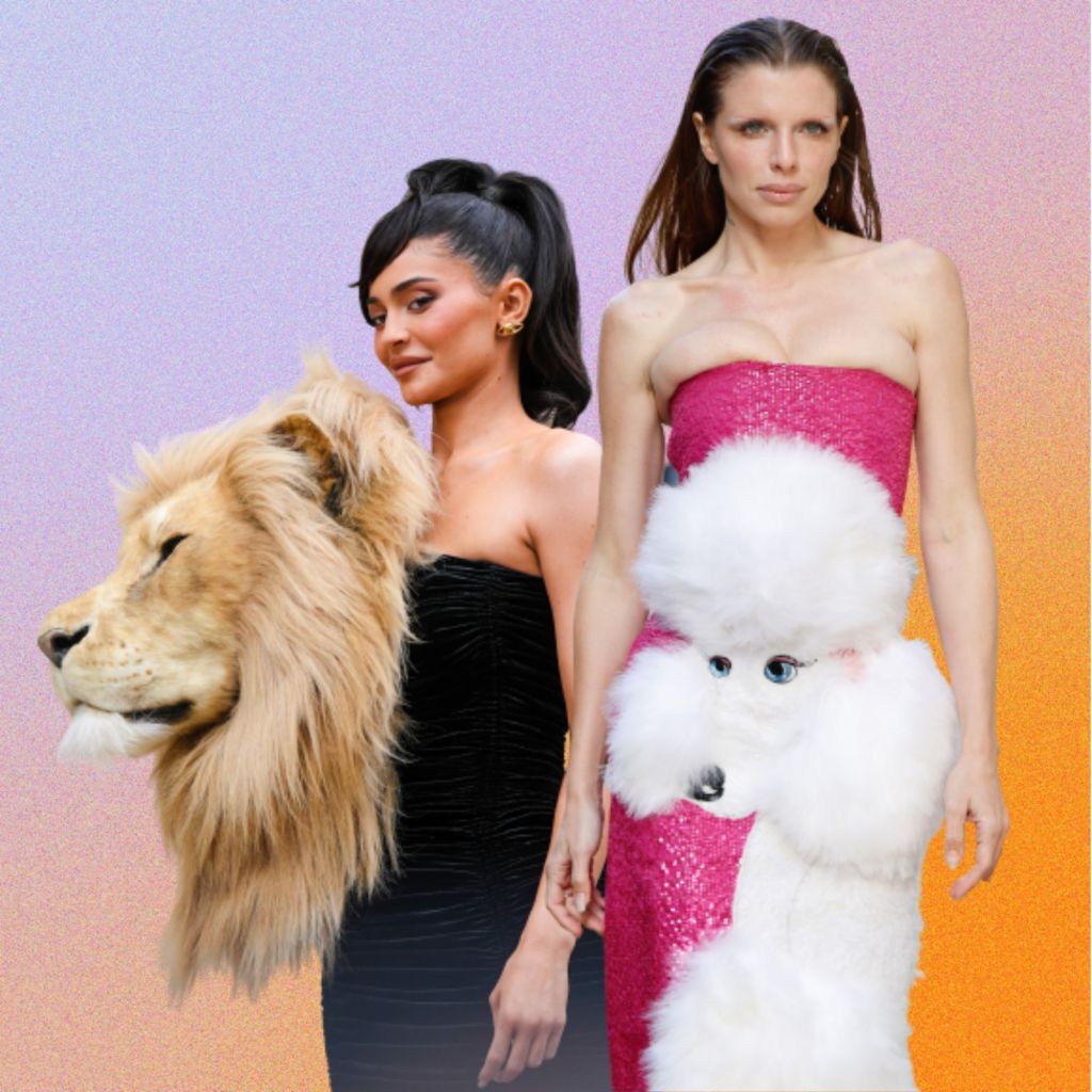 First, we saw Kylie Jenner in a dress so hot off the runway that it hadn’t even walked down it yet. At the Schiaparelli show, Jenner swanned into the Petit Palais wearing a black velvet one-arm gown, with a full-sized and extremely realisitic lion’s head jutting from the side. It was giving Aslan-chic — Narnia, but fashion.