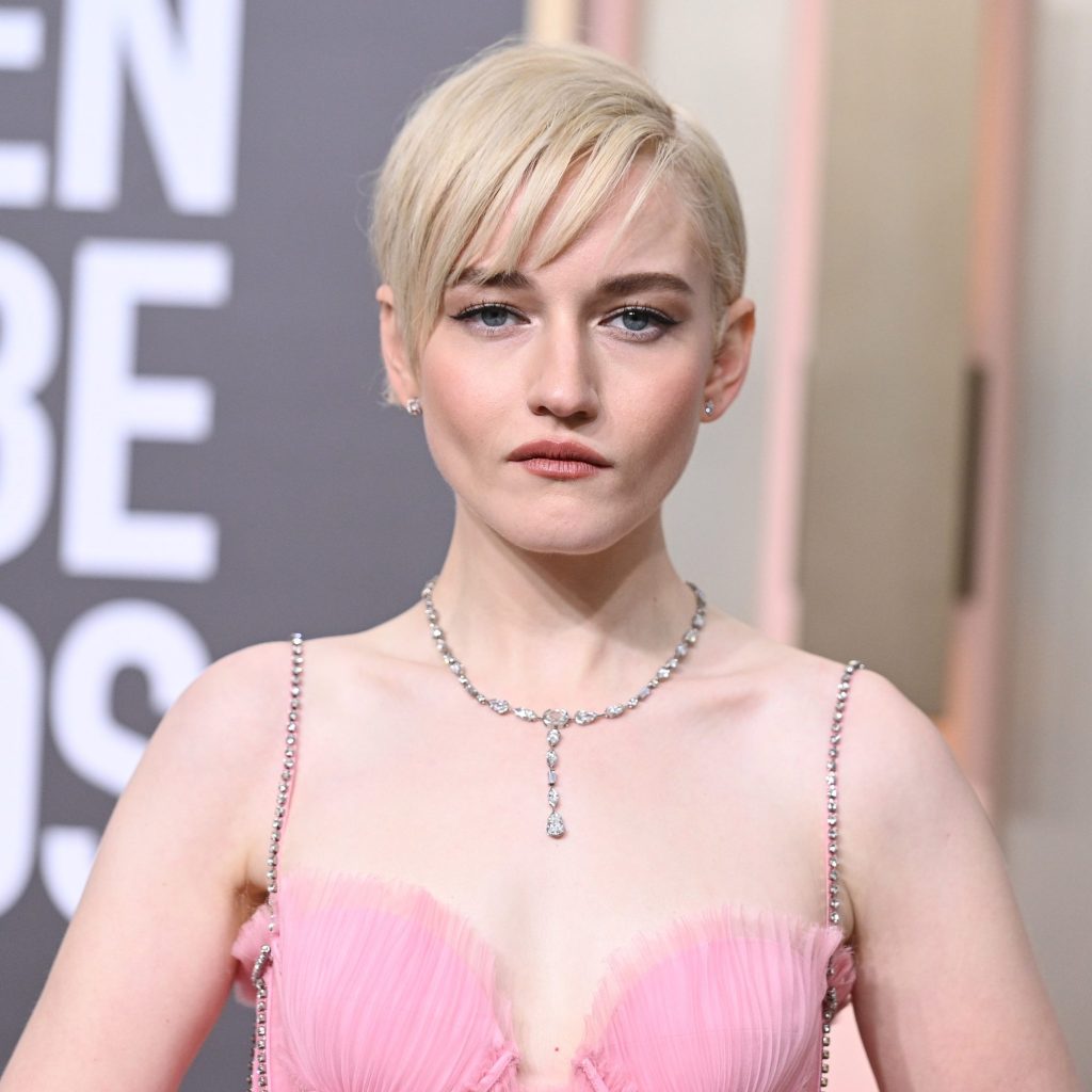 Julia Garner brought the romance to the 2023 Golden Globe Awards in an ethereal pink Gucci gown with a sparkling corset. The gown, held up by tiny bejeweled spaghetti straps, feathered out with layered ruffles. On the upper half, underwire details and lines of crystals on Garner’s bodice mimicked the appearance of the boning on a corset, adding glamour to the soft look. The glittering stones trailed all the way to the very bottom of her hemline, making the dress even more showstopping.