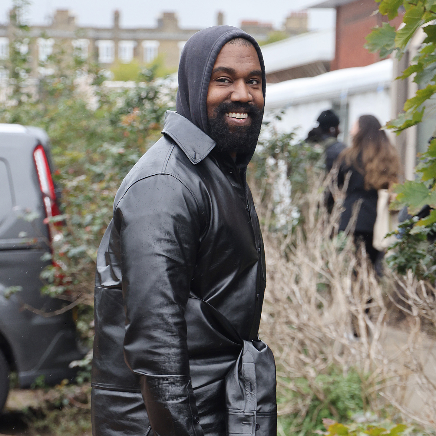 Ahead, see more photos of West’s polarising outfit at London Fashion Week.