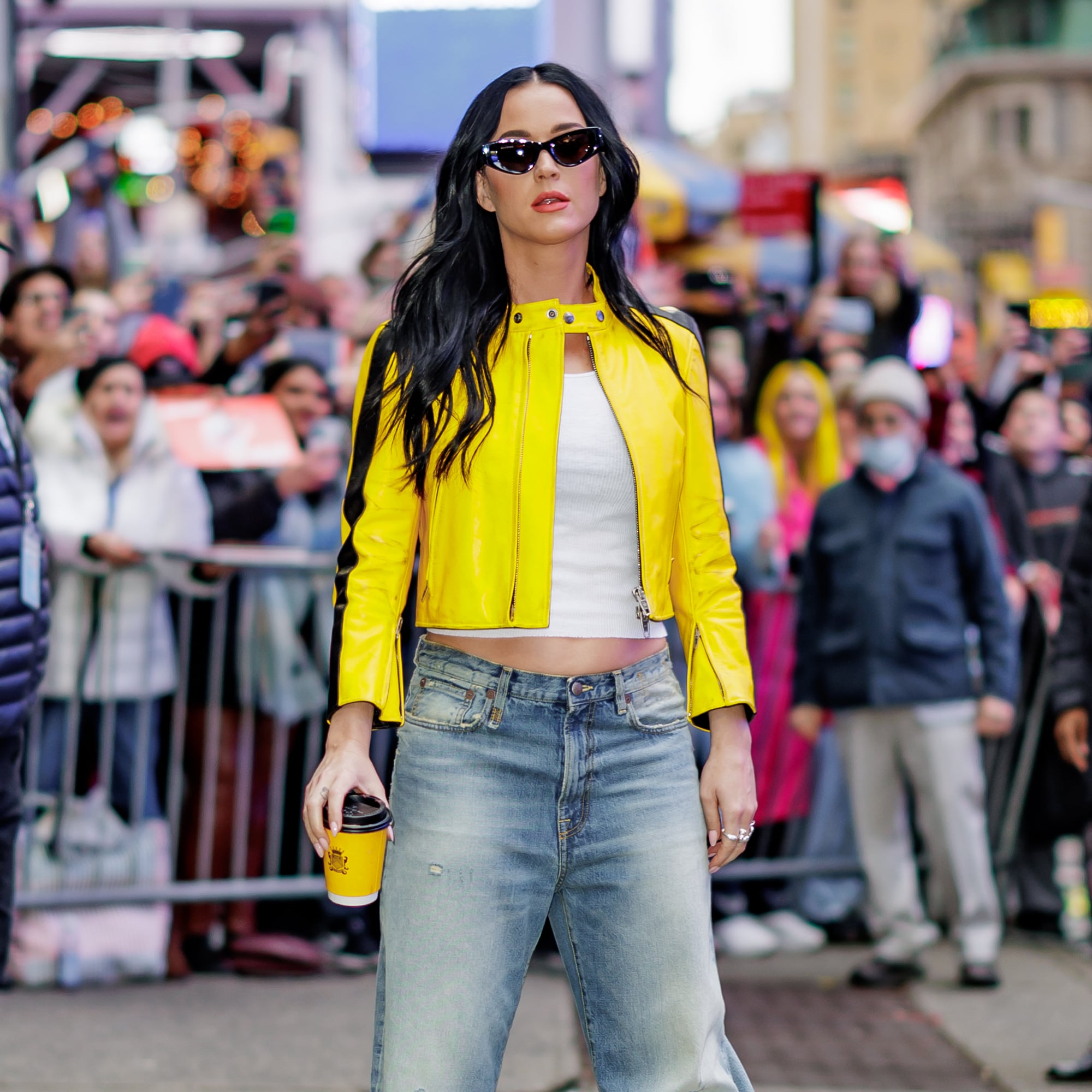 Katy Perry Takes Inspiration From “Kill Bill” in Yellow Moto Jacket and Low-Rise Jeans