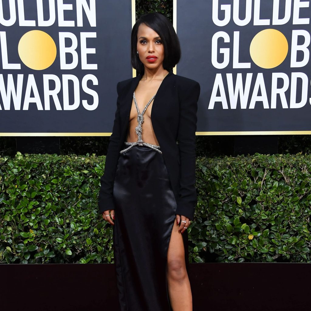Kerry Washington is never one to go unnoticed at an award show, but she made sure she captured everyone’s attention at the Golden Globes on Sunday. The Little Fires Everywhere star appeared on the red carpet in what was easily one of the sexiest ensembles of the night, which consisted of a satin maxi skirt with a thigh-high slit, a black blazer, and a body chain that she wore in lieu of a top.