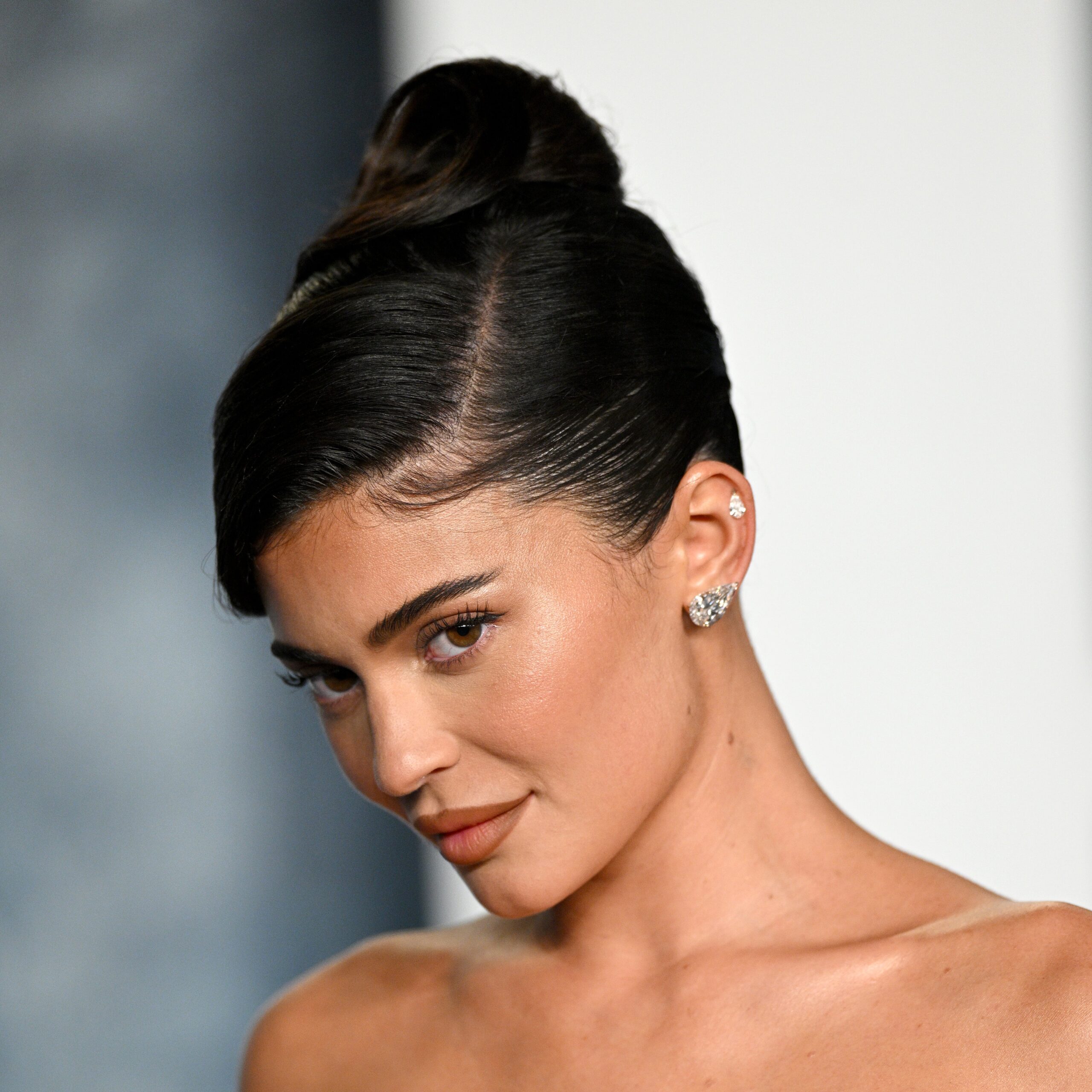 Kylie Jenner – who wasn’t in attendance at the ceremony – found a way to make two separate statements throughout the course of the evening. Styled by Alexandra Rose and Mackenzie Grandquist, the 25-year-old beauty mogul first arrived at the Vanity Fair step-and-repeat in a sweet but sassy strapless dress custom-designed by John Galliano for Maison Margiela. In its gunmetal tone, the look was very much in keeping with her edgy-yet-monochrome aesthetic, featuring an oversize bow at the chest and a train that fell down from the middle of her back, skimming the floor as she walked. Lorraine Schwartz diamonds climbed up her ears, including giant pear-shaped studs on each lobe. With her hair in an Old Hollywood updo, her makeup was quite natural.