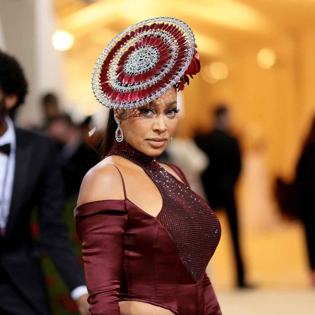 For fashion’s most celebrated occasion, Anthony opted for an open-shoulder, burgundy dress by her friend LaQuan Smith. “I wanted to support him, [and] I wanted to support a Black designer,” Anthony tells POPSUGAR. “We just played around with the Gilded Glamour theme. We were really happy with how everything turned out. It was a great collaboration and definitely a look I’ll remember forever.”