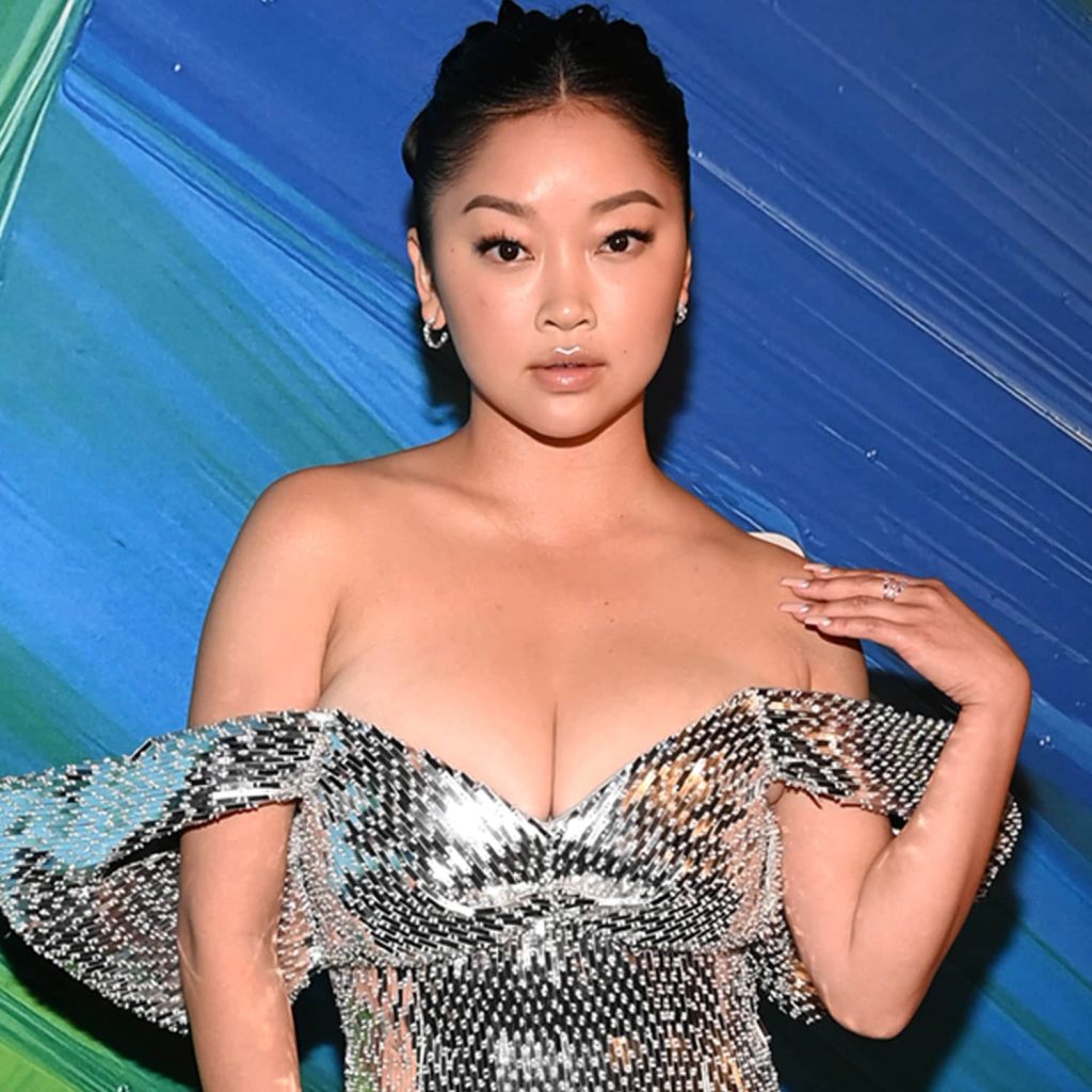 The To All the Boys star lit up the room in a reflective, off-the-shoulder gown with a plunging neckline and a dramatic puff sleeve. Like a mirror, the silver dress caught the light beautifully, drawing attention to the cheeky slit on the front of Lana’s dress and her silver heeled sandals peeking out from below. She completed the look with diamond-studded hoop earrings, a baby pink manicure, and a sophisticated bun.