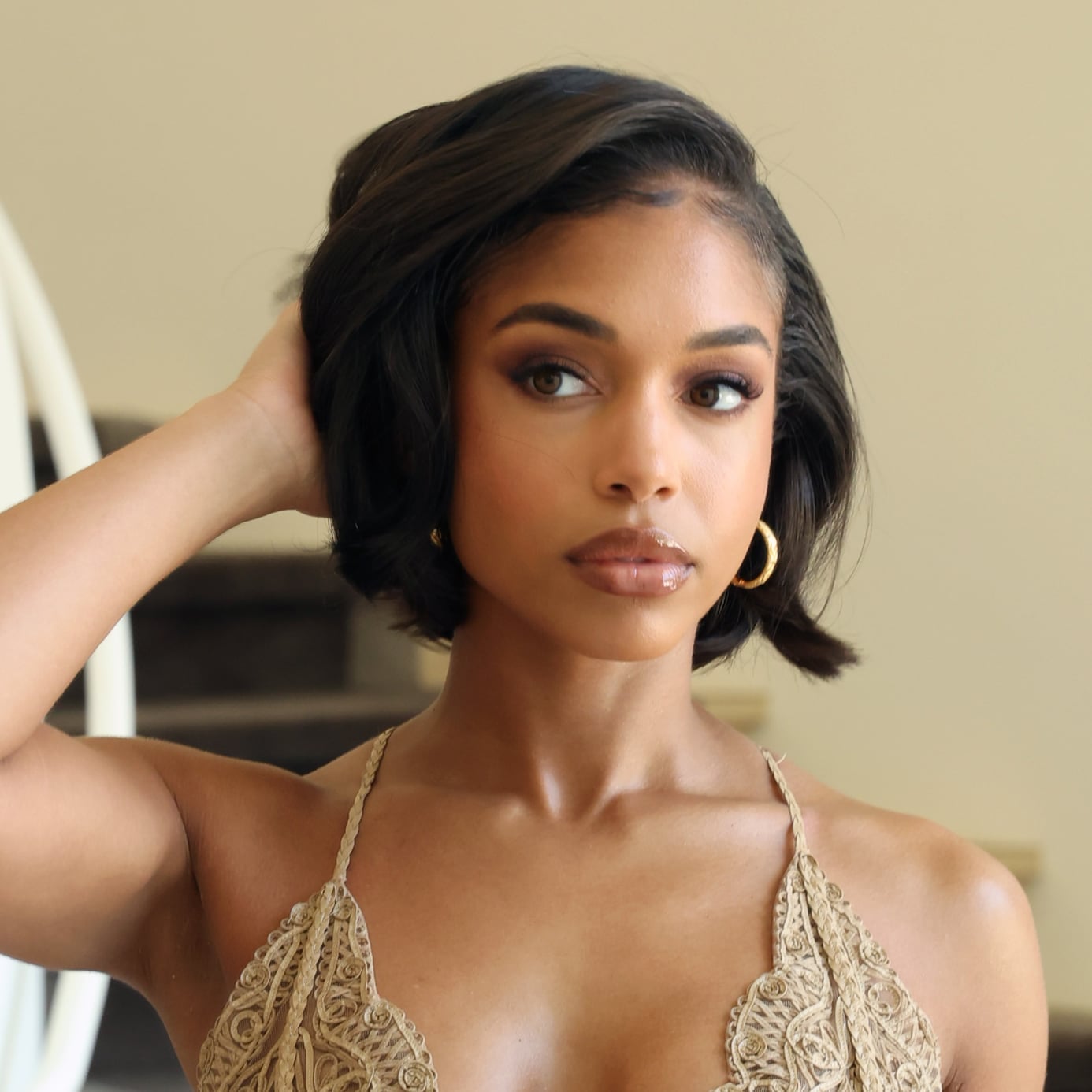 Lori Harvey celebrated Mother’s Day weekend in a take on the naked dress, by way of a nude-toned lace and silk halter gown from a vintage Versace collection. She attended the Anastasia Beverly Hills Mother’s Day Celebration by her own mother’s side, as Marjorie Harvey wore a contrasting royal-blue gown for the event, complete with an up-to-there slit. It seems we now know where Lori got her classic-with-a-twist style sense from. Lori’s nude-toned gown featured a totally open back and sheer lace bodice that gave way to a formfitting silk bottom that matched in the same neutral tone. The spaghetti straps extended from the down-to-there neckline and detailed waistline. The dress originally debuted on the Versace runway back in 2006, featuring an even more dramatically open neckline.