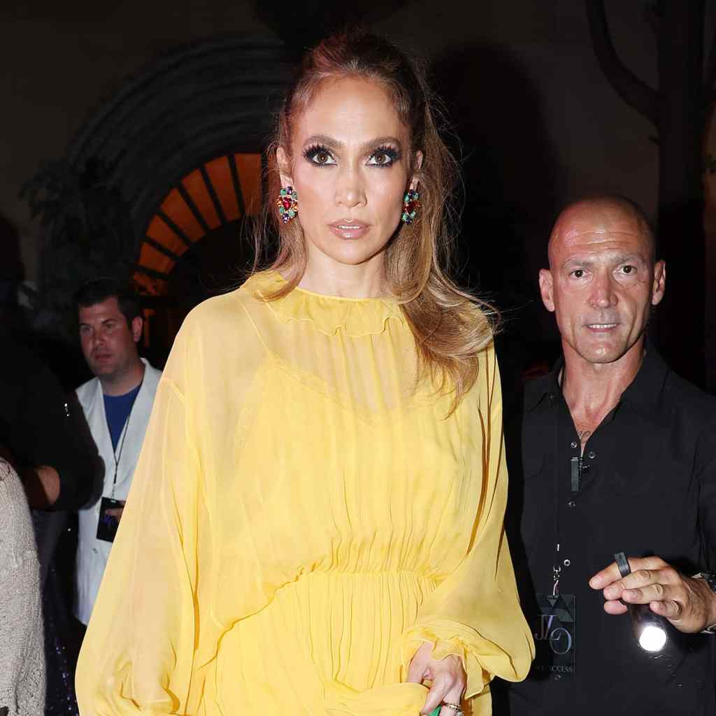 Stars gathered in Capri, Italy, on Saturday, July 30, for LuisaViaRoma x UNICEF’s fourth annual charity gala. Following an auction that raised over eight million euros to support the organisation’s emergency programs for Ukraine and Syria, guests enjoyed Jennifer Lopez’s headliner performance, which she delivered in a custom bold animal-print ensemble by Roberto Cavalli. Prior to J Lo’s electric stage presence, the event’s star-studded red carpet welcomed a sea of glamorous, stylish guests gathered at the Certosa di San Giacomo monastery. And while Lopez skipped the official carpet, she arrived at the event in a sheer yellow dress with a high neck and long sleeves, which she teamed with white platforms, colourful earrings, and a bedazzled green Louis Vuitton bag.