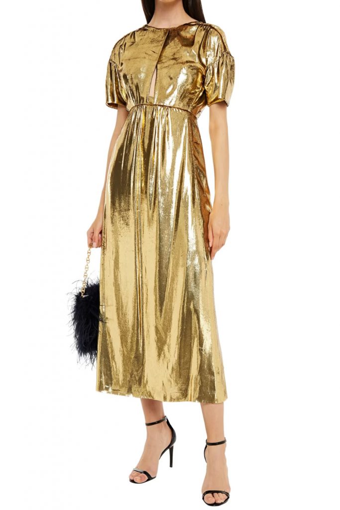 This Miu Miu Open-back lamé-velvet midi dress ($1,258) on the other hand, is slightly more modern and modest, with subtle nods towards old Hollywood sex and glamour.