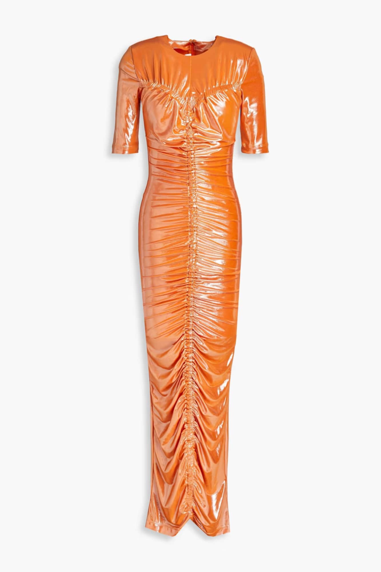 Go full modern with this Rotate Birger Christensen Abigail ruched metallic jersey maxi dress ($238) that is equal parts mermaid fantasy and sex appeal. Add a matching orange lip gloss for extra drama.