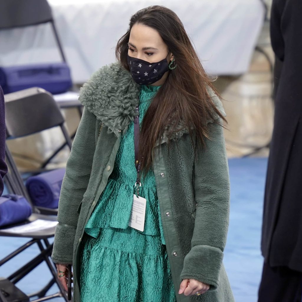 We expected Kamala Harris‘s niece, Meena Harris, to bring her style A game for the 2021 presidential inauguration in Washington DC, and we were correct. Meena already posted an outfit wearing a chic white coat with tall boots from Marion Parke on Jan. 19, and on Jan. 20, Meena attended the historic event to support her aunt, who will become the first woman vice president, wearing a green outfit. She styled a metallic green ruffled dress with a matching coat. Her Coach coat looked ultra cozy with its green shearling lining.