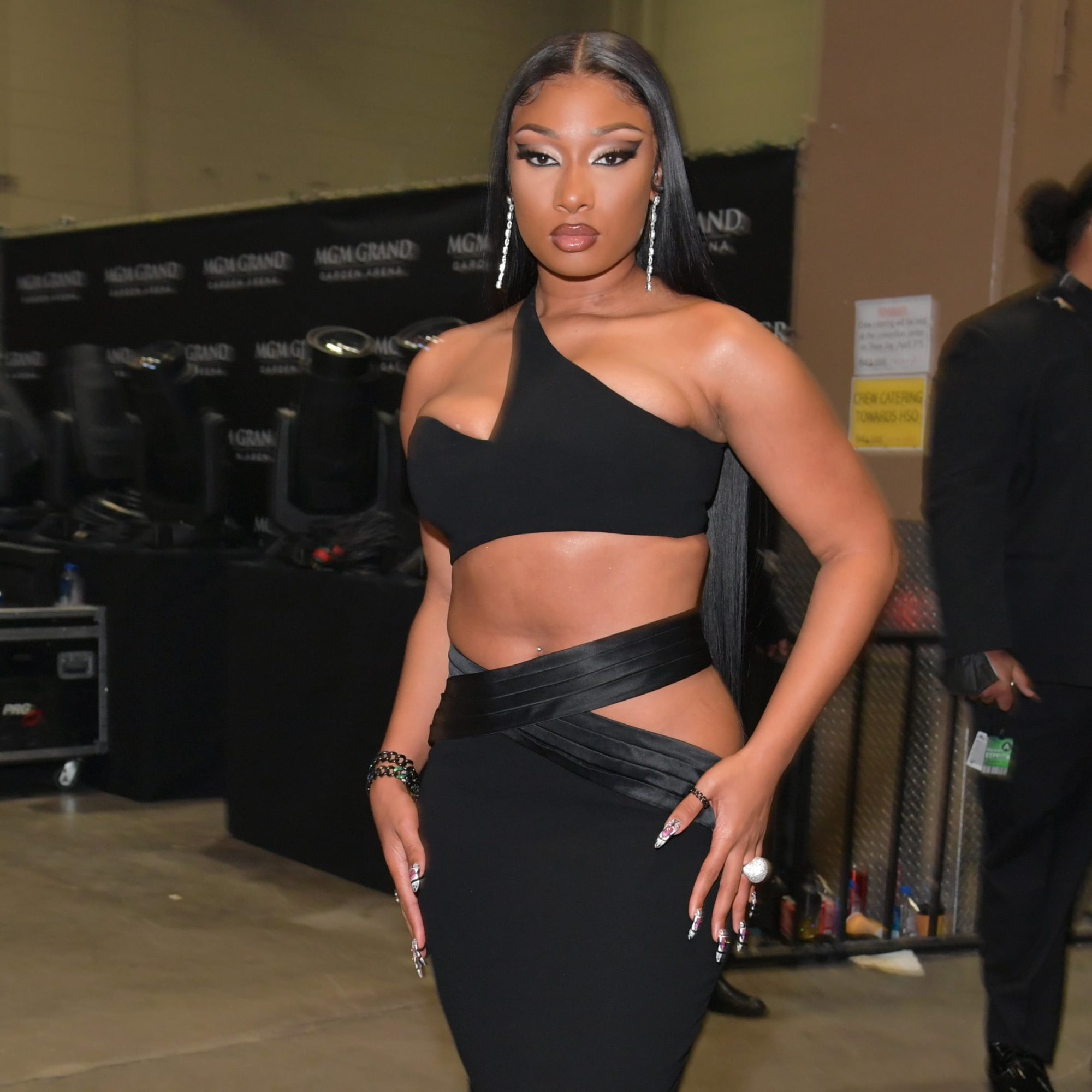 In four similar photos on an Instagram carousel, Megan shared her look of the moment: a long-sleeved black catsuit that’s completely see-through. With the first pic taken from behind, you can just make out a floral mesh pattern all over the thin material. The front features somewhat of a corseted leotard underlay, which, of course, is Megan’s signature. In her ears are silver chandelier earrings, and the “Her” rapper wears her hair pulled back off her face. Megan captioned the photo, “Hotties y’all ready for #stallionnightlive”.