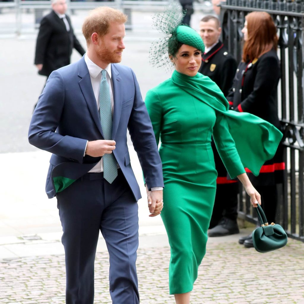 Meghan and Harry arrived at London’s Westminster Abbey to join fellow royals in celebrating Commonwealth Day 2020. The pair used their final major fashion moment to communicate a message of solidarity, with Harry matching the inner lining of his suit jacket to Meghan’s Spring-green outfit.