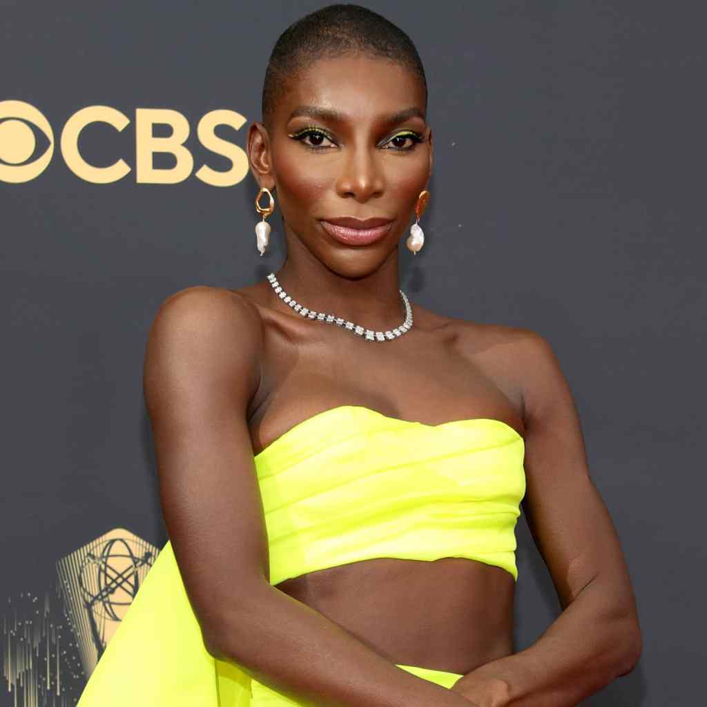 Celebrities were racing down the 2021 Emmys red carpet in looks so glamourous we were afraid to blink, but Michaela Coel reminded us all to yield and take in the moment with her neon yellow Christopher John Rogers two-piece dress. The custom look was composed of an ankle-length column skirt in cotton twill and a neon bralette top that transformed into an enormous six-foot silk organza bow from behind, flowing onto the ground like the vibrant train of a wedding dress. The I May Destroy You creator star didn’t hesitate to go all in with the monochrome style statement and paired the look with highlighter yellow heels that made the entire look that much more electric.