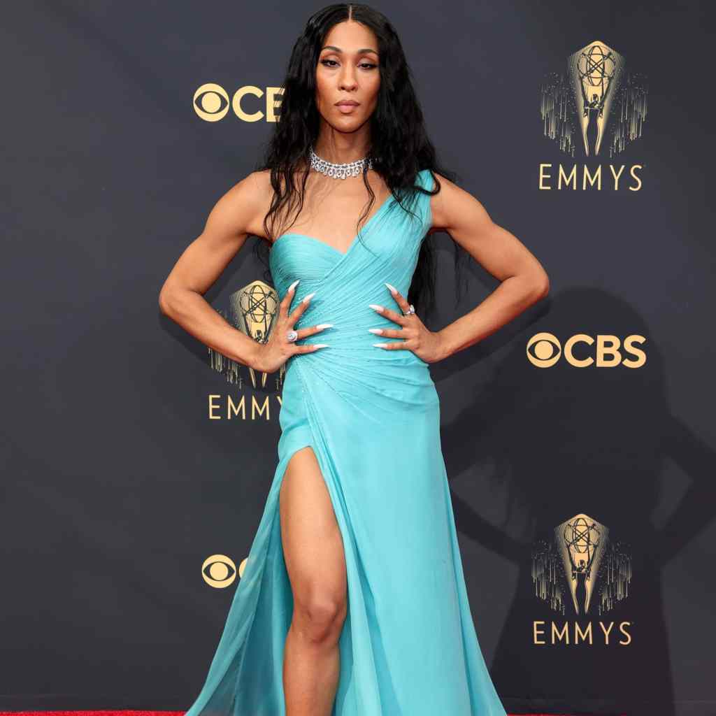 For one of the most incredible moments in her career at the 2021 Emmys, Pose actress Mj Rodriguez, who also performs as Michaela Jaé, chose vintage Atelier Versace. The star marks the occasion, on which she’s made history as the first transgender woman to to be recognised in a lead acting category, in an incredible one-shoulder turquoise design from the archives with rhinestone-covered ruching at the bodice and a thigh-high leg slit, perfect for showing off her matching satin sandals. Mj actually sketched her idea of the perfect look for the Versace team, and together, with her stylist Katie Bofshever, they settled on fitting something from a past runway – so you know we’re applauding them for their sustainable fashion choice. Scroll ahead to see how Mj’s gown was accessorised with Bulgari jewels and a Judith Leiber clutch, then see what everyone else wore for their arrivals on the red carpet.