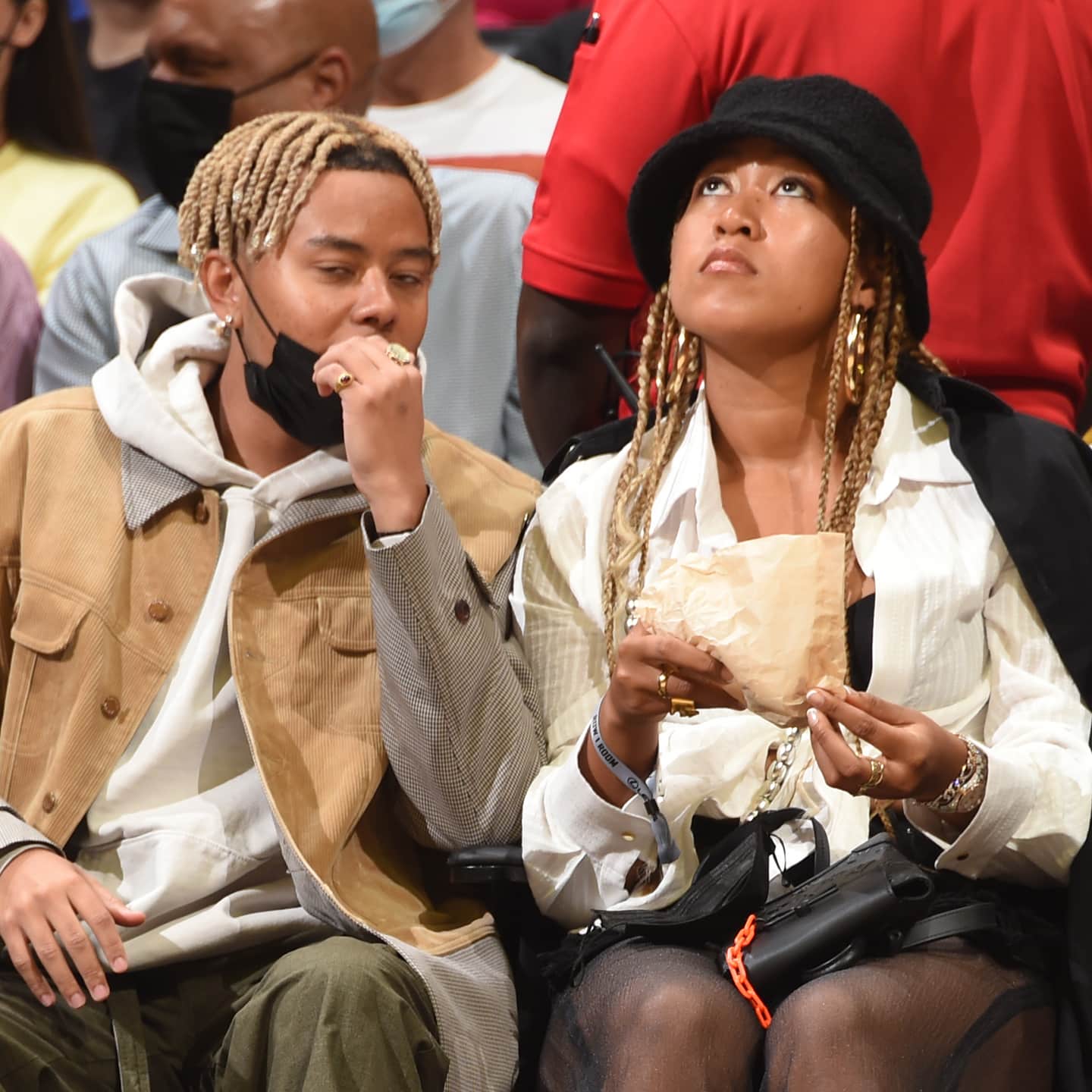 The hottest date night spot as of late? Hanging courtside at a basketball game. On Sunday night, Naomi Osaka was spotted front row at the Clippers vs. Mavericks match in Los Angeles with her boyfriend and rapper Cordae. The court was the tennis player’s runway as she stood out in a fashion-forward outfit consisting of a casual white button-down and a pair of funky sheer pants with velvet embroidered cuffs.