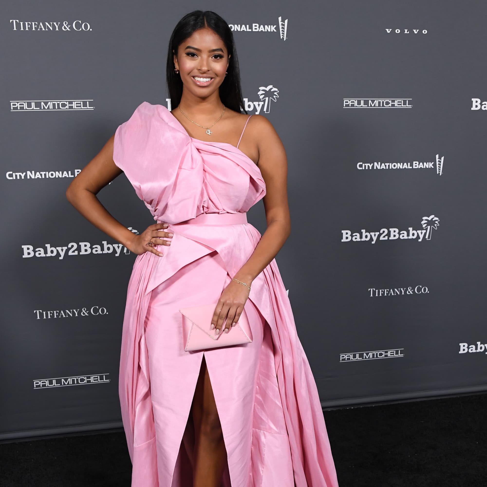 Natalia Bryant is pretty in pink! On Saturday night, the 18-year-old model attended the Baby2Baby 10-Year Gala alongside her mum, Vanessa Bryant, dressed in beautiful blushing pink from head to toe. Natalia, who is becoming a force in the fashion industry, was styled by duo Rob Zangardi and Mariel Haenn wearing an orchid pink Monsoori dress. The open-back dress featured a big bow strewn across the chest and a centred thigh-high slit with multiple layers filling out the skirt, beautifully resembling flower petals. She paired the dress with Femme LA heels, shiny Kallati jewellery, and the perfectly matching Tyler Ellis Lee Pouchet clutch.