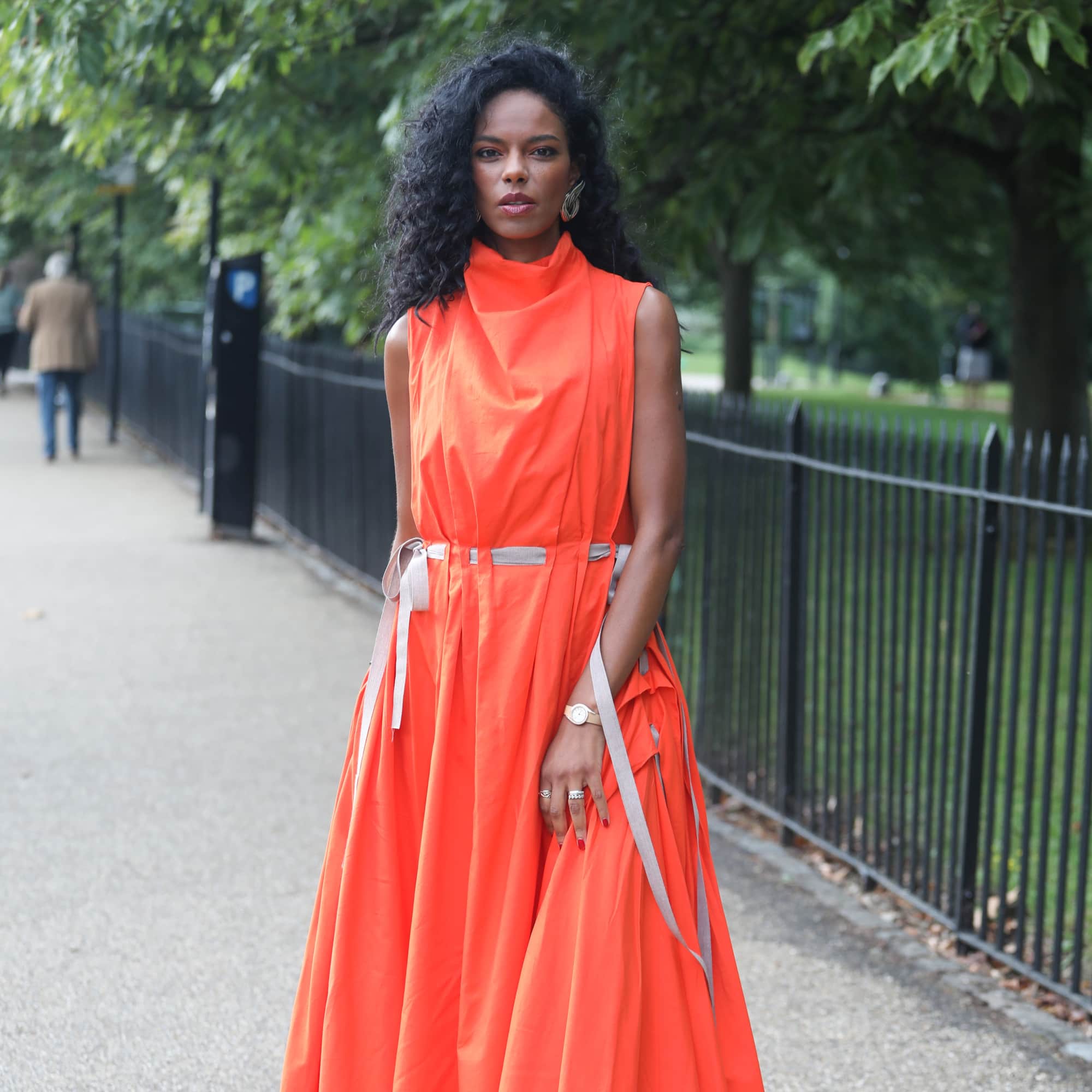 This button-front suit looks sculptural and fashion-forward, and it’s a surefire way of standing out in any room. We loved the cropped fit and the fluid hem of the pants.