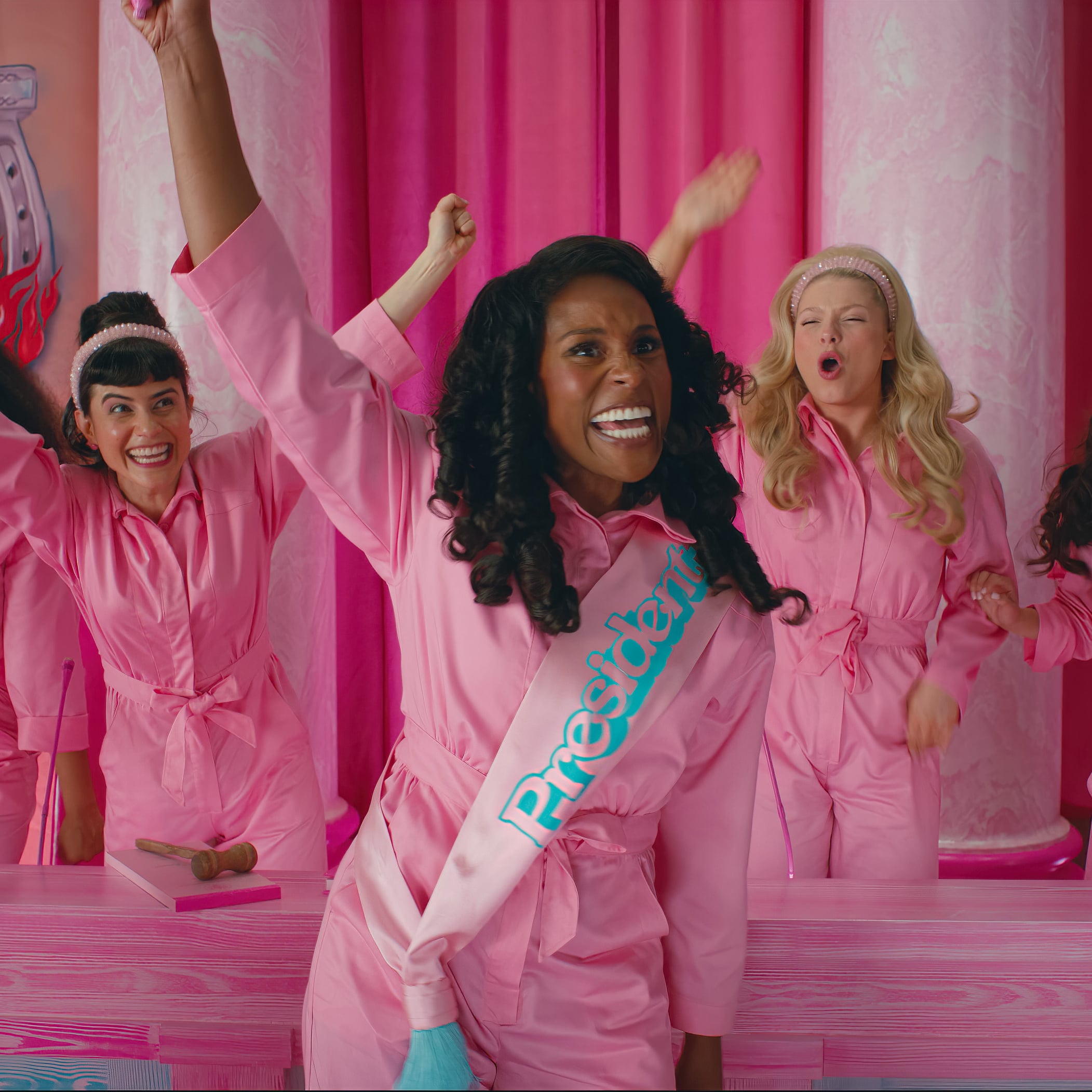 Fortunately, that’s not the case in Barbieland. Just take the montage scene in the new “Barbie” movie, when you’re introduced to the utopia’s most powerful women leaders. The President, played by Issa Rae, delivers a motivational speech. The all-women justices on the Supreme Court make a ruling. And they’re all wearing pink or using pink accessories.
