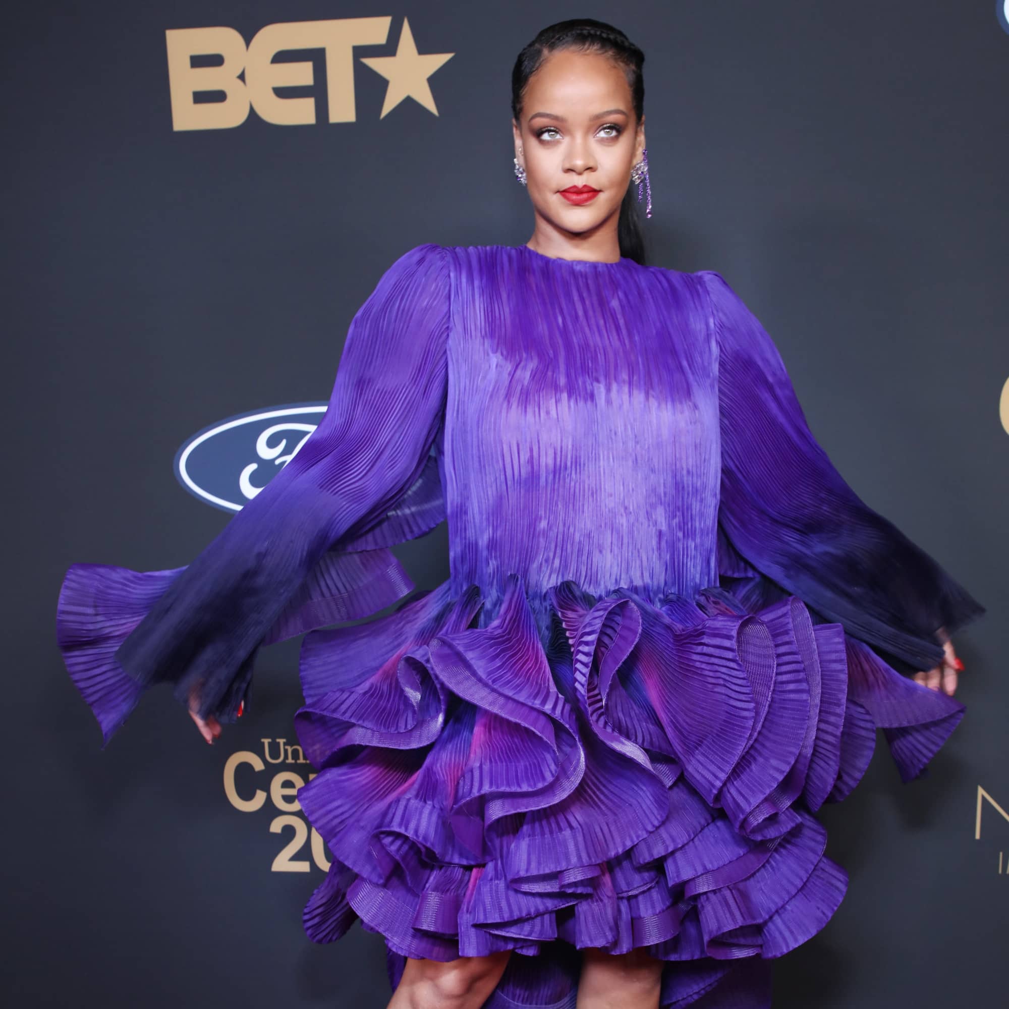 Spring flowers are being spotted early thanks to Rihanna‘s ruffled Givenchy dress at the NAACP Image Awards on Saturday night. The triple threat – singer, actress, entrepreneur – was honored with the President’s Award during the celebration, and she looked every inch a winner in her royal purple ensemble.
