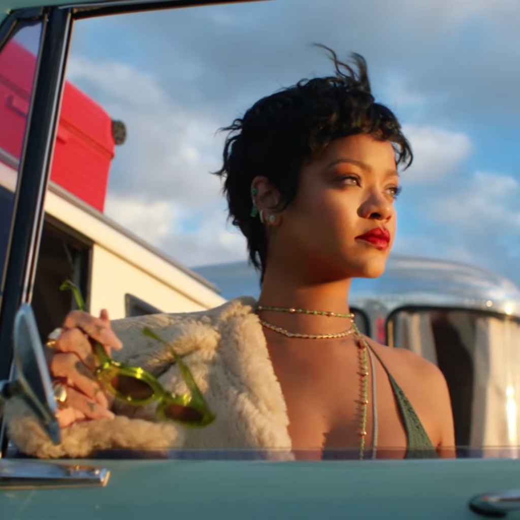 Rihanna incorporates the LVMH-owned label’s accessories into her laidback looks, styling two hard box pouches over a crochet bikini top with knit separates, a furry tie-dye cardigan, and animal print bucket hat – and we all know how she feels about those! In another still from the film, we see her in a shearling brown leather coat with a red suitcase and lime Lucite sunglasses. Throughout the entirety of the campaign, you can feel Rihanna’s energy pulsating through, which speaks to the fact that she truly is “never still,” and that when she is on the go, she’s always staying true to her signature bold look. Keep reading to see Rihanna for Rimowa.