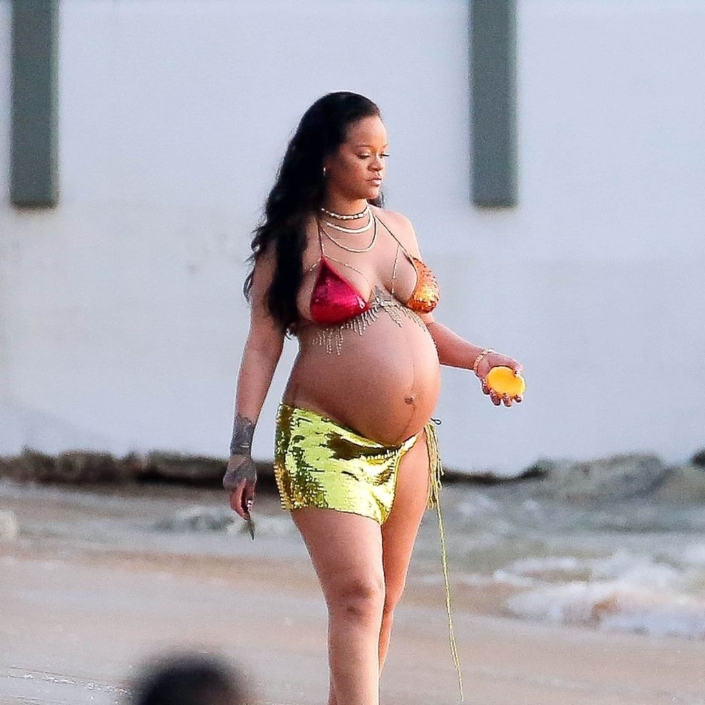 Rihanna’s boundary-pushing maternity style extends to her swimwear, as exemplified by her recent vacation. While in Barbados with boyfriend A$AP Rocky, the singer-turned-business-mogul enjoyed some quality beach time in a festive swimwear outfit. Even when hanging out oceanside, Rihanna remains committed to her bold and adventurous sense of style. Case in point: her sequin bikini look.