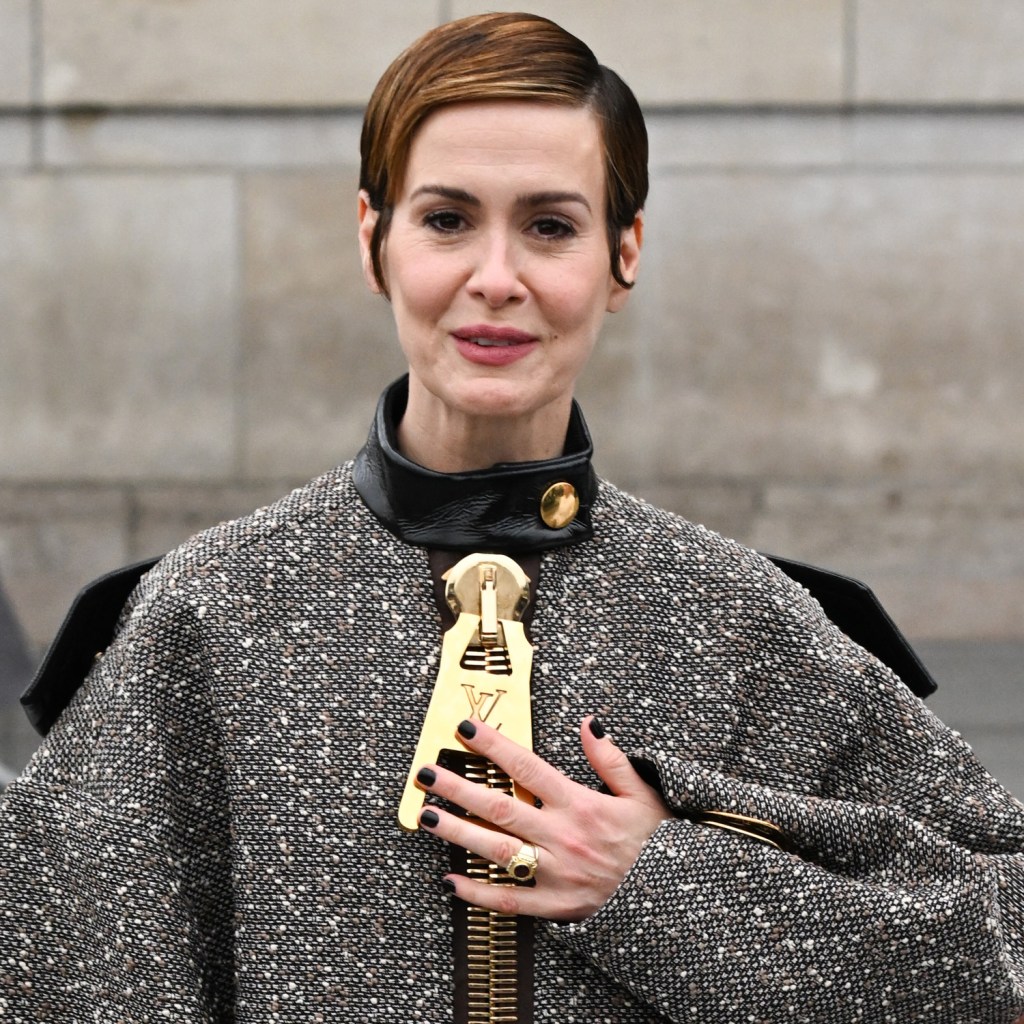 In this week’s meme-worthy fashion news, Sarah Paulson bundled up for the cold in a designer coat with a zipper so comedically large even her partner, Holland Taylor, had to get a grip. On March 6, the longtime couple strutted through Paris Fashion Week in tailored jackets while attending the Louis Vuitton fall/winter 2023–2024 show.