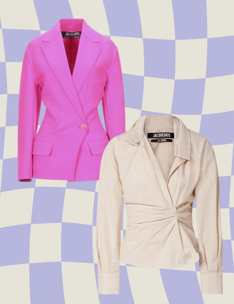 For warmer days, this asymmetrical blouse from Jacquemus will take you from work to drinks seamlessly. The linen-cotton blend fabric makes it breathable, while the gathered bodice detail and slightly barrelled sleeves add plenty of interest. For those rogue cooler days, we especially love the structured waist on this Jacquemus Blazer, made slightly more casual with the drop shoulders and striking fuchsia hue. In our opinion, it’s the perfect trans-seasonal piece.