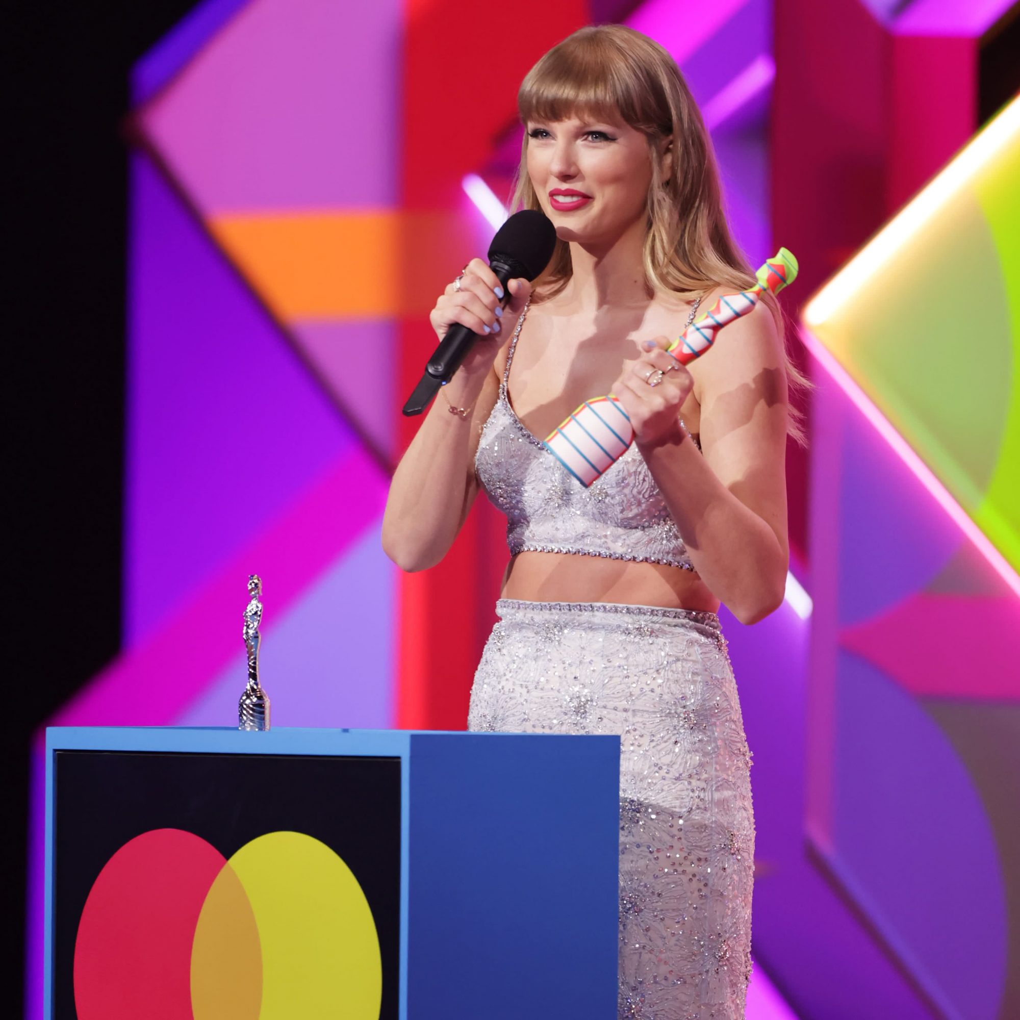 While we were all staying safe during lockdown, Taylor Swift was busy releasing three whole albums. To honour her hard work and hustle, the Lover, Folklore, and Evermore singer accepted the 2021 BRIT award for global icon in a sparkling Miu Miu coordinated set.