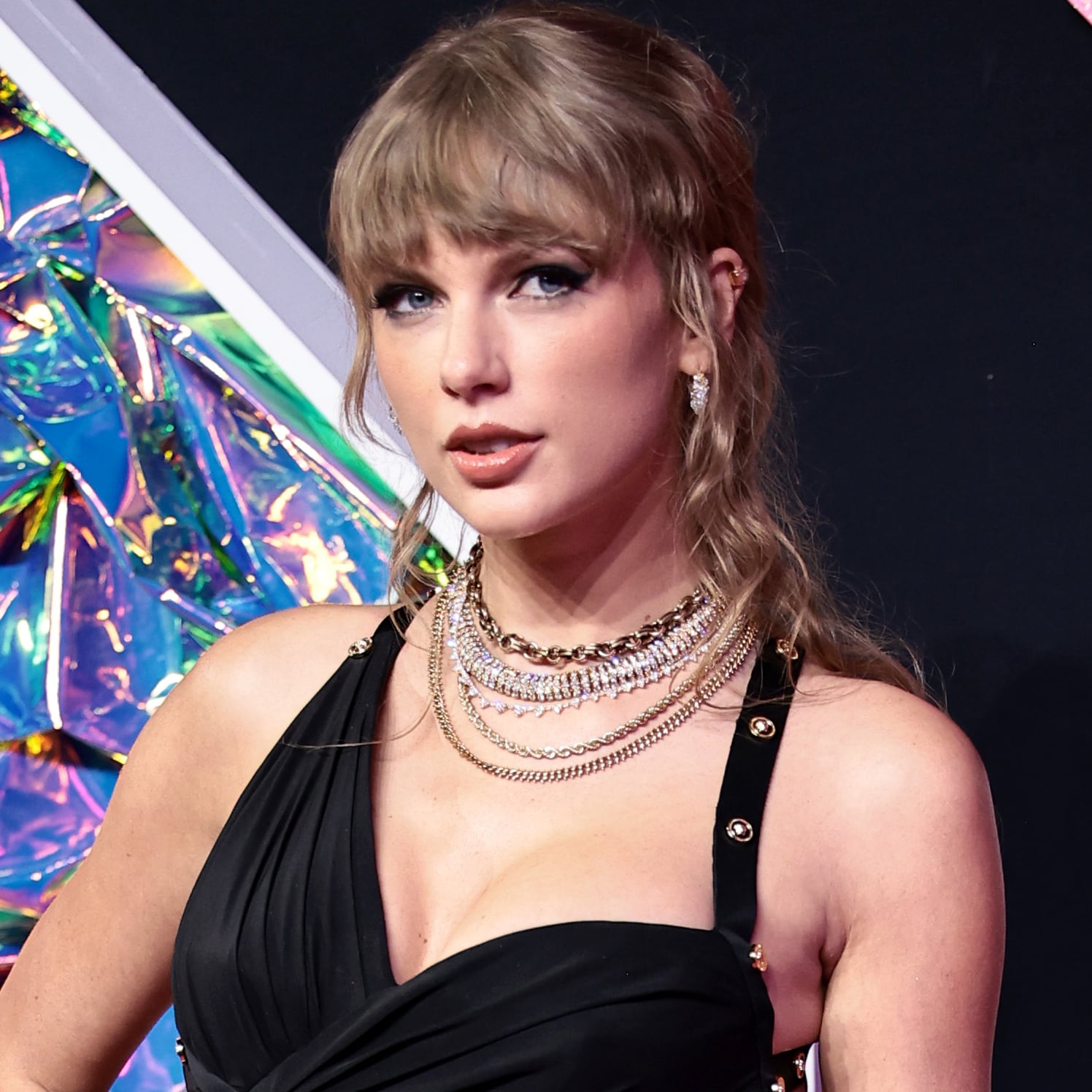 Call it what you want – a hint, clue, or clever Easter egg – but Taylor Swift‘s dress at the MTV VMAs on Sept. 12 felt like a clear nod to her next rerecorded album. Less than two months out from her upcoming album release, “1989 (Taylor’s Version),” the singer hit the red carpet in a floor-length Versace dress with a thigh-high slit. The all-black ensemble was lined with gold eyelets that matched her chrome nails. She paired the outfit with Anita Ko jewelry.