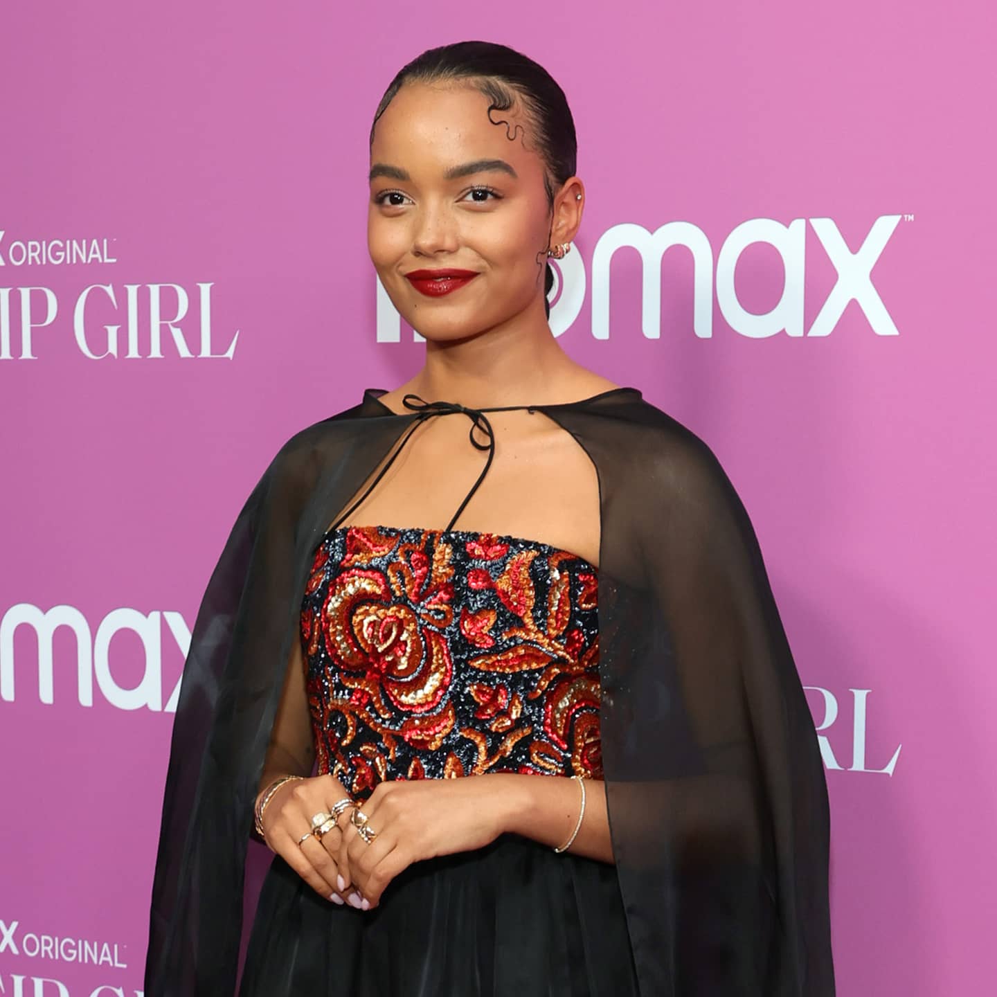 I don’t know about you, but the vampy vibe immediately reminded me of none other than Jenny Humphrey, who, interestingly enough, many fans have been comparing Zoya to since more details of the reboot have emerged. Perhaps Whitney wanted to give a subtle shout-out to her inspo ahead of the show? For what it’s worth, I could totally picture Little J wearing something like this to cotillion. Regardless, Whitney certainly exuded the energy of a new It girl in her statement look. Ahead, see close-ups of the budding star’s red carpet outfit.