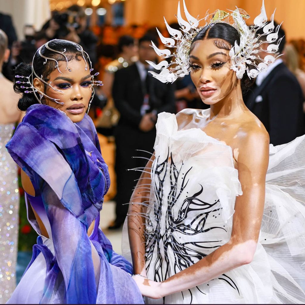 As celebrities paraded up and down the steps of the 2022 Met Gala on Monday night, Teyana Taylor and Winnie Harlow took a moment to bask in the beauty of each other’s Iris van Herpen designs. While the silhouettes, colours, and overall aesthetic of their dresses couldn’t have been more different, both Taylor and Harlow embraced the gala’s “Gilded Glamour” theme, proving without a shadow of a doubt that they understood the assignment.