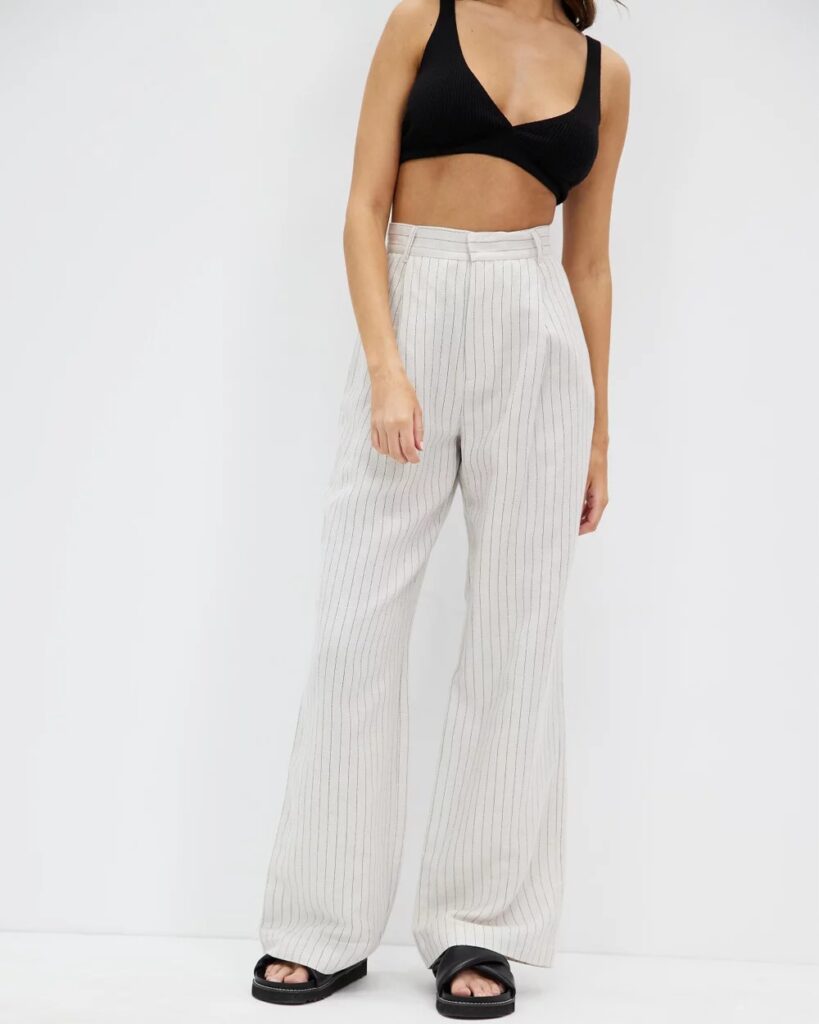 Pinstripes are timeless, and so is linen, so these trousers are a win-win. Wear them with a simple tee or, for a going out look, a cropped or bra-style top.