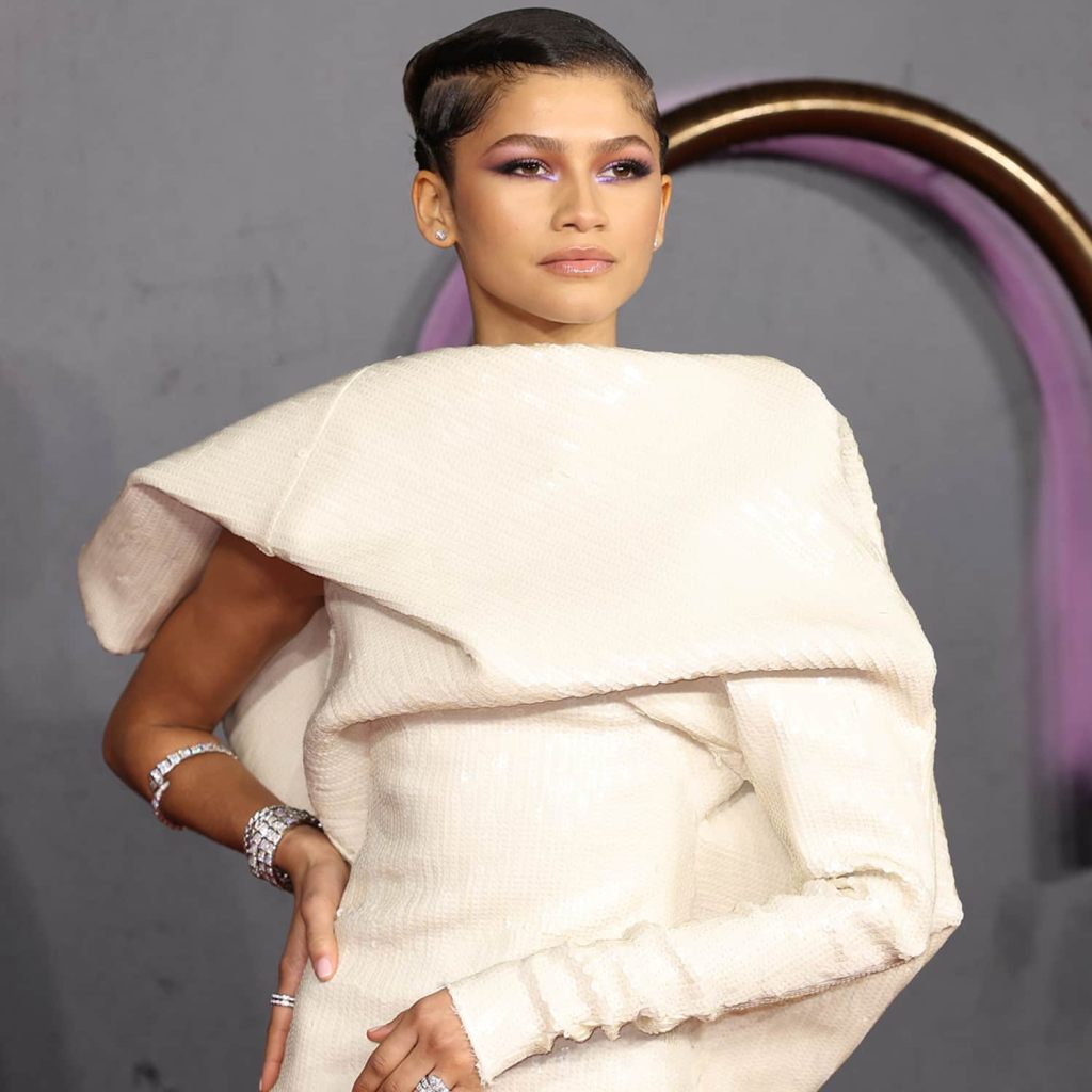 As we daydream about 2022’s biggest fashion moments, Zendaya is busy setting trends so far into the future we need a spaceship just to catch up. While attending an advanced screening of Dune at Odeon Leicester Square in London, Zendaya, who plays Chani in the upcoming film, took a page out of Queen Amidala’s style book and arrived on the red carpet in an off-white Rick Owens dress so shimmery it deserves its own coordinates in the galaxy. Like an outfit custom made for an intergalactic royal, the drape of the gown is dramatic yet elegant in the front, sweeping backwards into an open-backed cape that may or may not transform into a one-person glider if the red carpet were actually a sci-fi film.