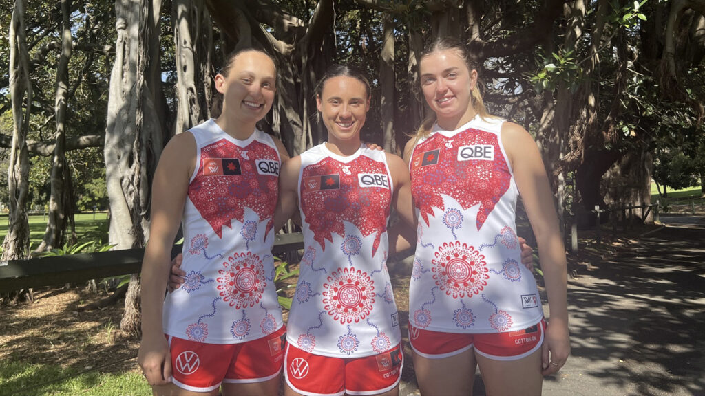 This year, the Sydney Swans proudly showcase their first Indigenous Round guernsey designed specifically for the AFLW team. Designed by current player and proud Ningy Ningy woman Aliesha Newman, this guernsey represents community and connection. After speaking with some Elders in Sydney, Newman came up with a design that brilliantly represents the 29 clans within NSW through 29 yarning circles. The circles also represent the AFLW team and all the people who’ve helped them get where they are.