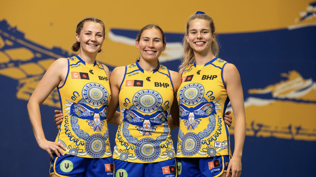 The West Coast Eagles’ guernsey was designed by player and proud Kija and Jaru woman, Krstel Petrevski, is a beautiful expression of unity. It incorporates circles, feathers and boomerangs to symbolise not just unity but also the strength of mind, body and spirit. The guernsey also features a striking depiction of the Waalij (eagle) spreading its wings.