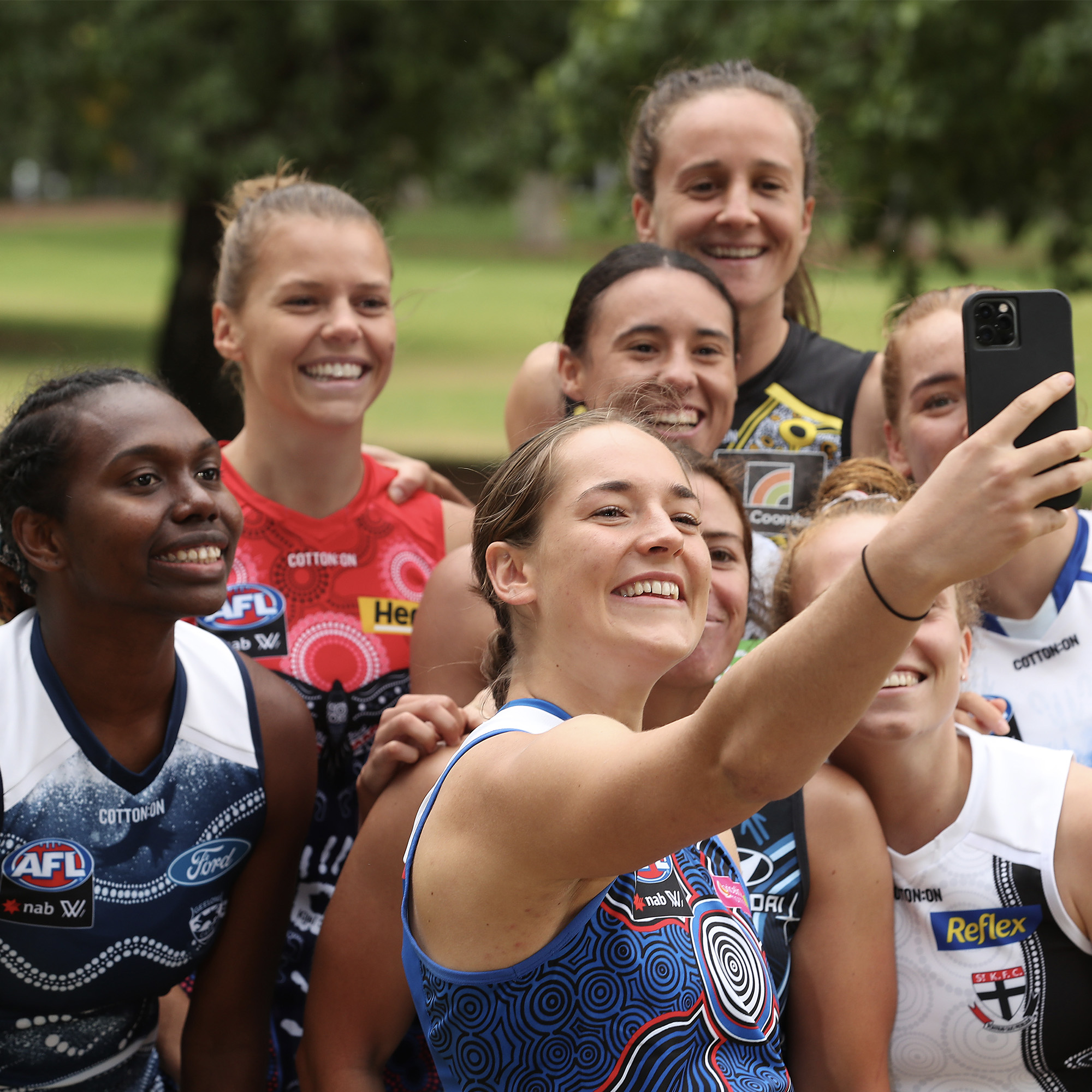 The AFLW players will be donning their team’s Indigenous guernsey for the upcoming Indigenous Rounds — and you may have even seen them already. Find out if there’s a game on near you, or discover and shop your team’s design on their website.