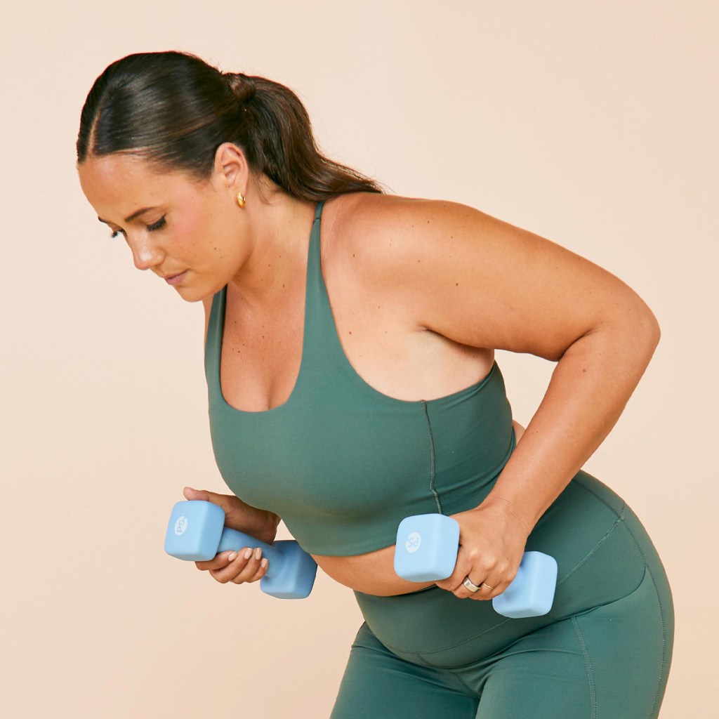 Equipment: We recommend using five- to 10-pound weights for this workout, but feel free to use heavier or lighter weights depending on your ability. Here’s a guide on how to choose the right weight for your workout.