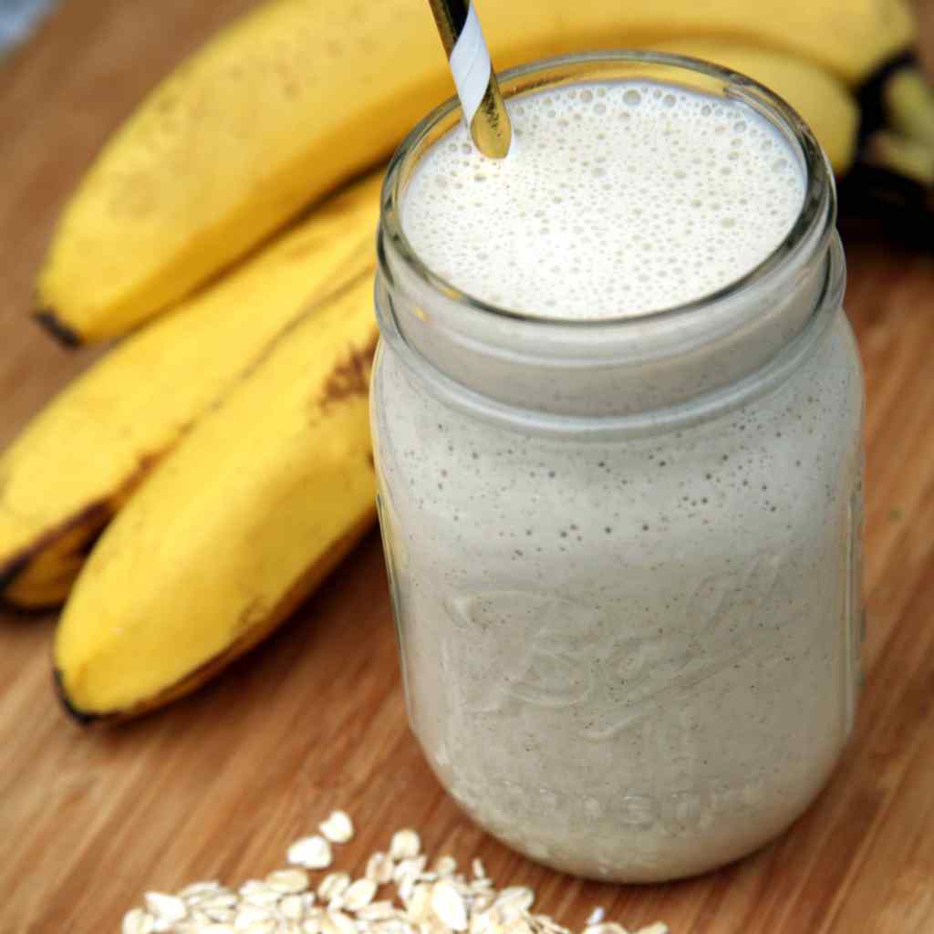 If you want to prepare your smoothie the night before to save time and you prefer a more silky-smooth texture, try this banana oat smoothie recipe that involves soaking the oats overnight. It offers 10 grams of satiating fiber and over 14 grams of protein, and it tastes thick and delicious like a milkshake!